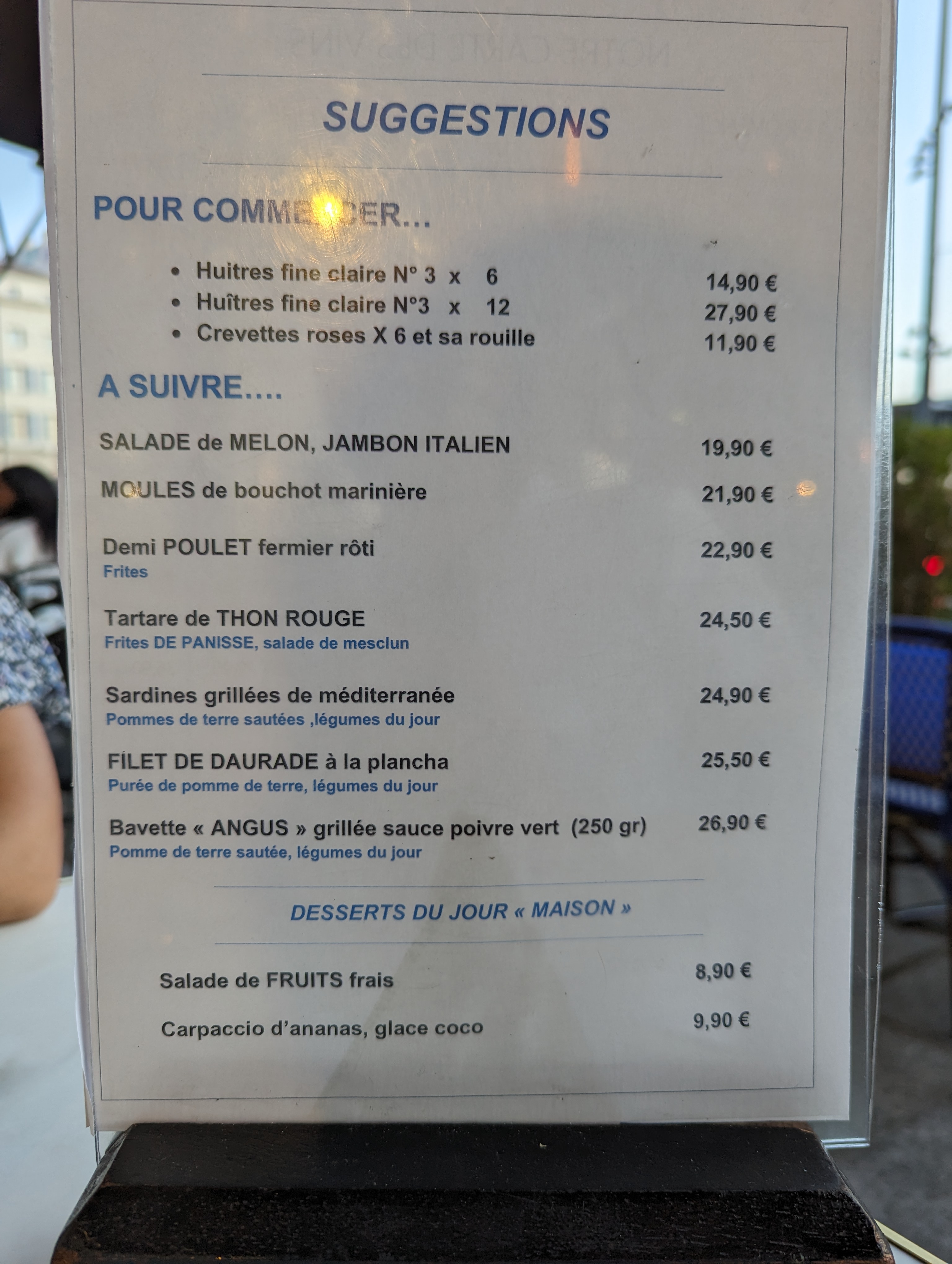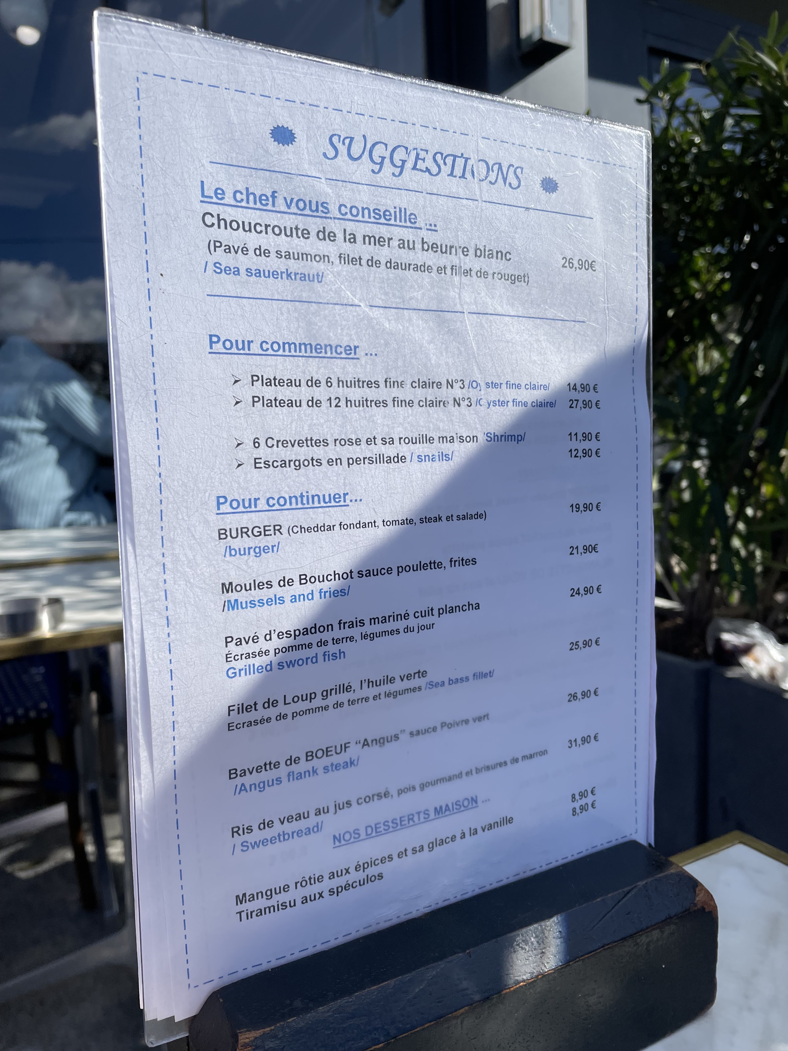 Accueil très agréable et service rapide . Table dressée sans le demander de façon à avoir une belle vue sur le port . Je recommande vivement .