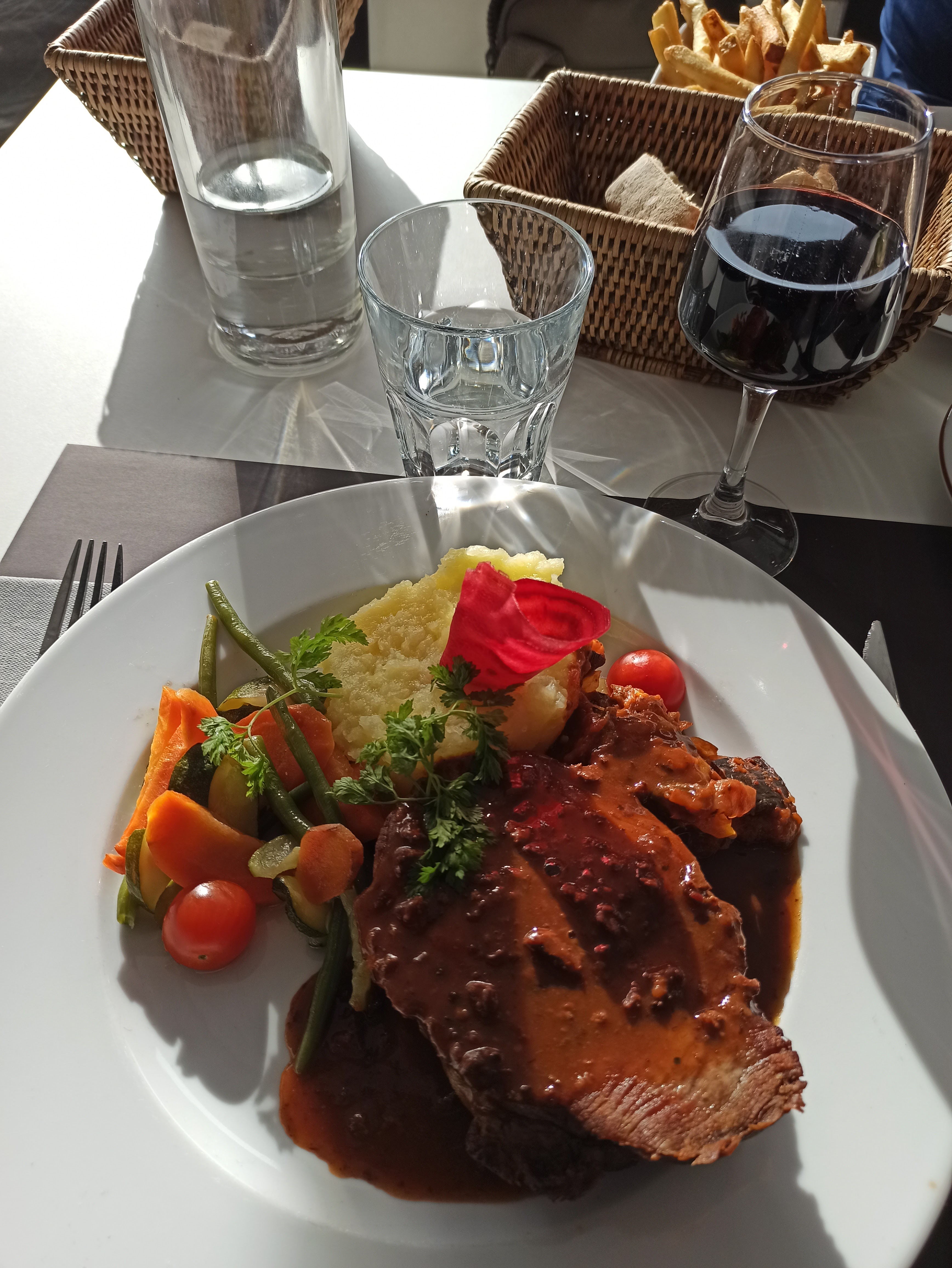 Super bien, rien a redire, Personnel très sympa, on as très bien mangé ,je conseille fortement, c'est très rare que je dise cela pour un restaurant .Le responsable est très commercial et franchement nickel Mon Ami a mangé une Assiette du Pêcheur ( façon bouillabaisse) il a aimé et dis que c'était excellent, moi Foie de veau persillé, écrasé de pommes de terre, ratatouille, sublime 👍🏻👍🏻👍🏻👍🏻