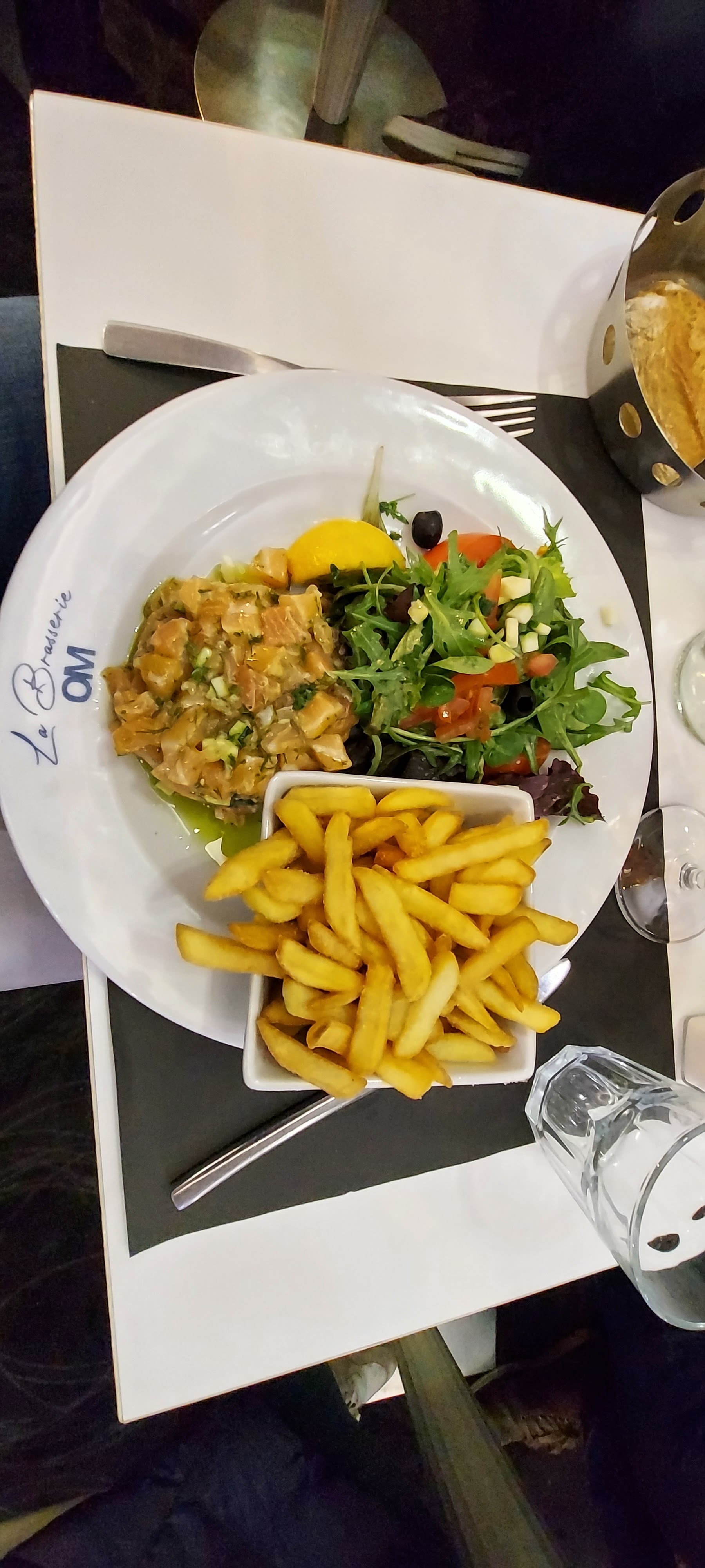 Nous avons mangé dans cette brasserie et nous nous sommes régalés. Le service est rapide contrairement à d autres restaurants sur le vieux port. Le repas a été délicieux, nous avions pris un tartare de saumon et un menu enfant. Je ne peux que recommander, en sachant que les serveurs sont très aimables.