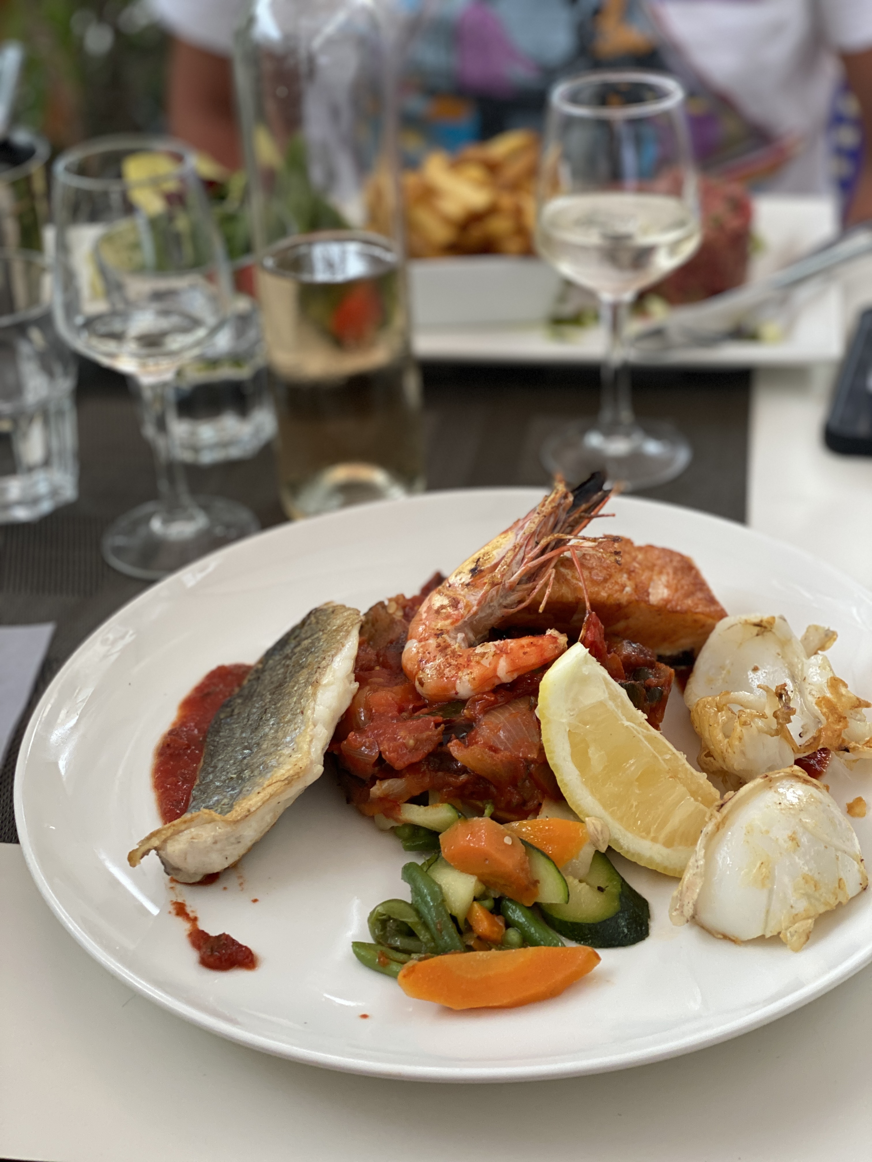 Personnel super agréable et qui a le sourire ! ( Ça change de certains restos ) Plats succulents et poisson frais. Vue agréable sur le vieux port et salle climatisée en interieur , je recommande !