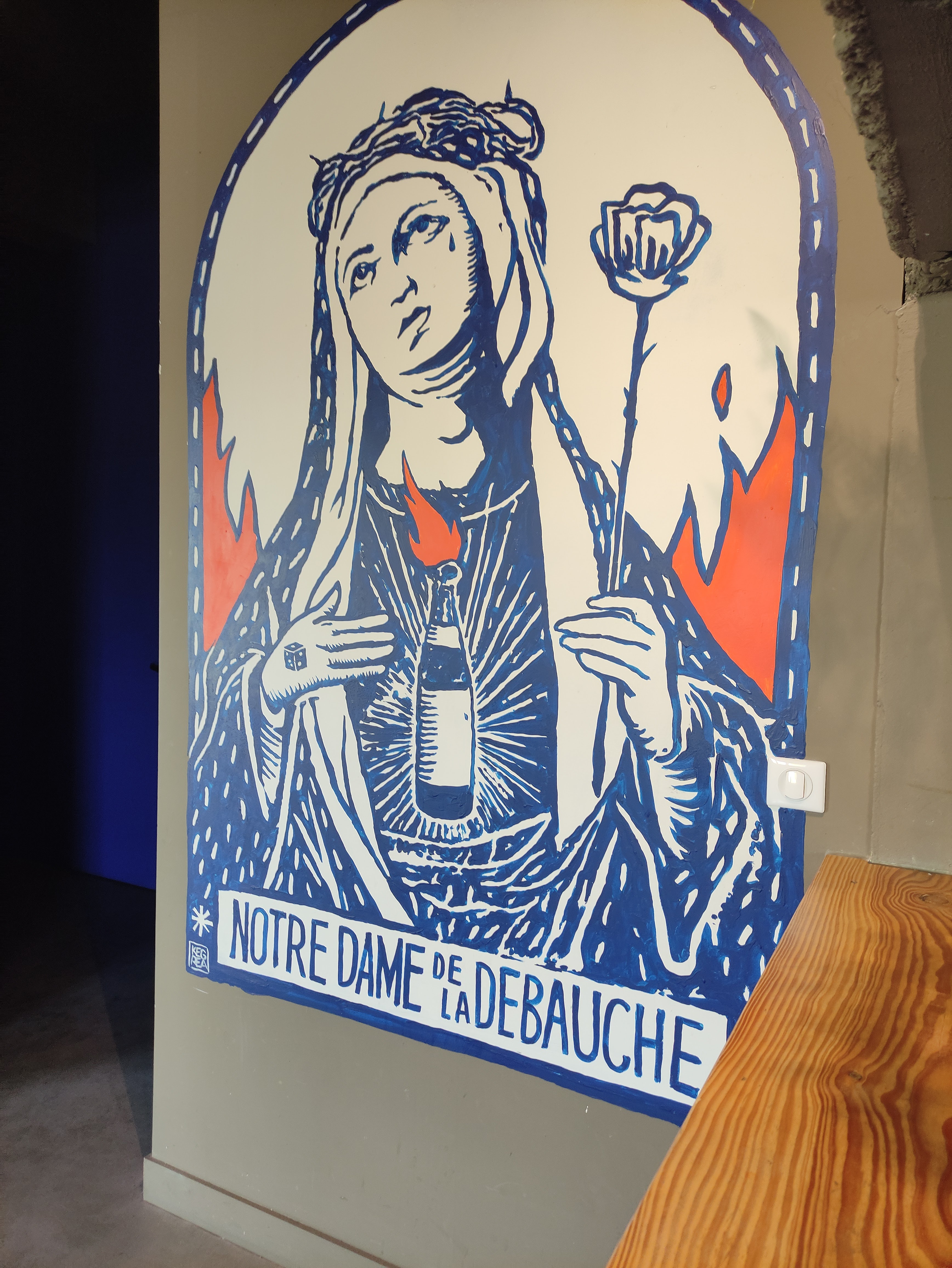 Une brasserie sympathique avec des serveurs agréables et professionnels. La bière est bonne et les planches de charcuteries sont de bonne qualité. Le lieu est inclusif, c'est précisé sur les affiches. C'est très bien, de cette manière tout le monde est à l'aise ici. Tout le monde, hélas non. Si vous êtes chrétien, il se peut que la décoration vous choque... Je ne reviendrai plus malgré la qualité des produits car j'ai été très attristée de voir des objets de culte détournés et ridiculisés. J'ai essayé de me dire qu'en France les gens avaient le droit au blasphème et de passer outre, mais partout où je posais les yeux, j'avais le cœur serré. Je me demande bien en quoi ce type d'humiliation et de vexation pour les chrétiens peut être apprécié par d'autres... Enfin, j'ai souhaité vous le dire. Update : Je me permets de venir modifier ma note et mon commentaire suite à votre réponse. Je vous remercie pour vos explications.