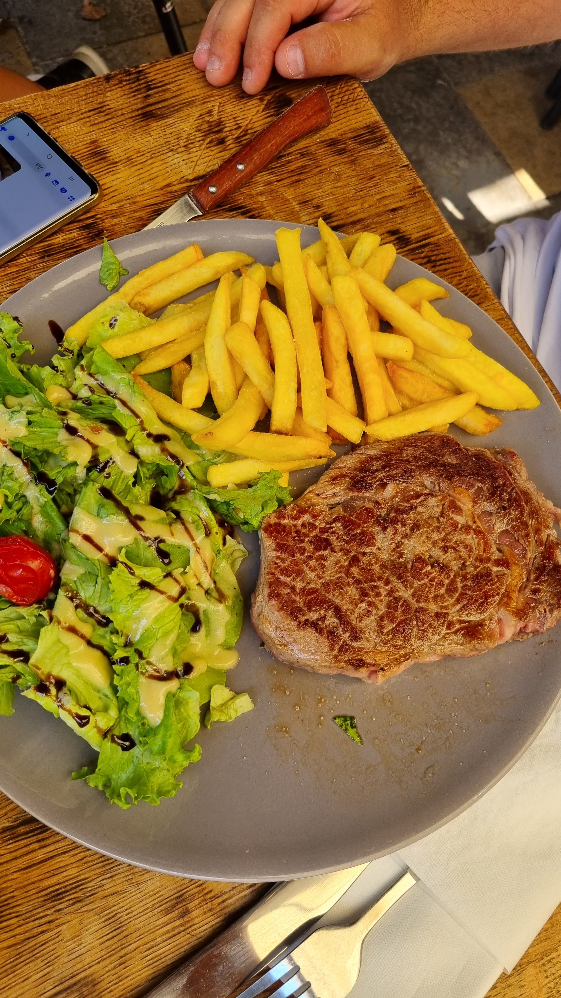 Restaurant sur la place, portion généreuse, entrecôte excellente, personnel accueillant, je recommande
