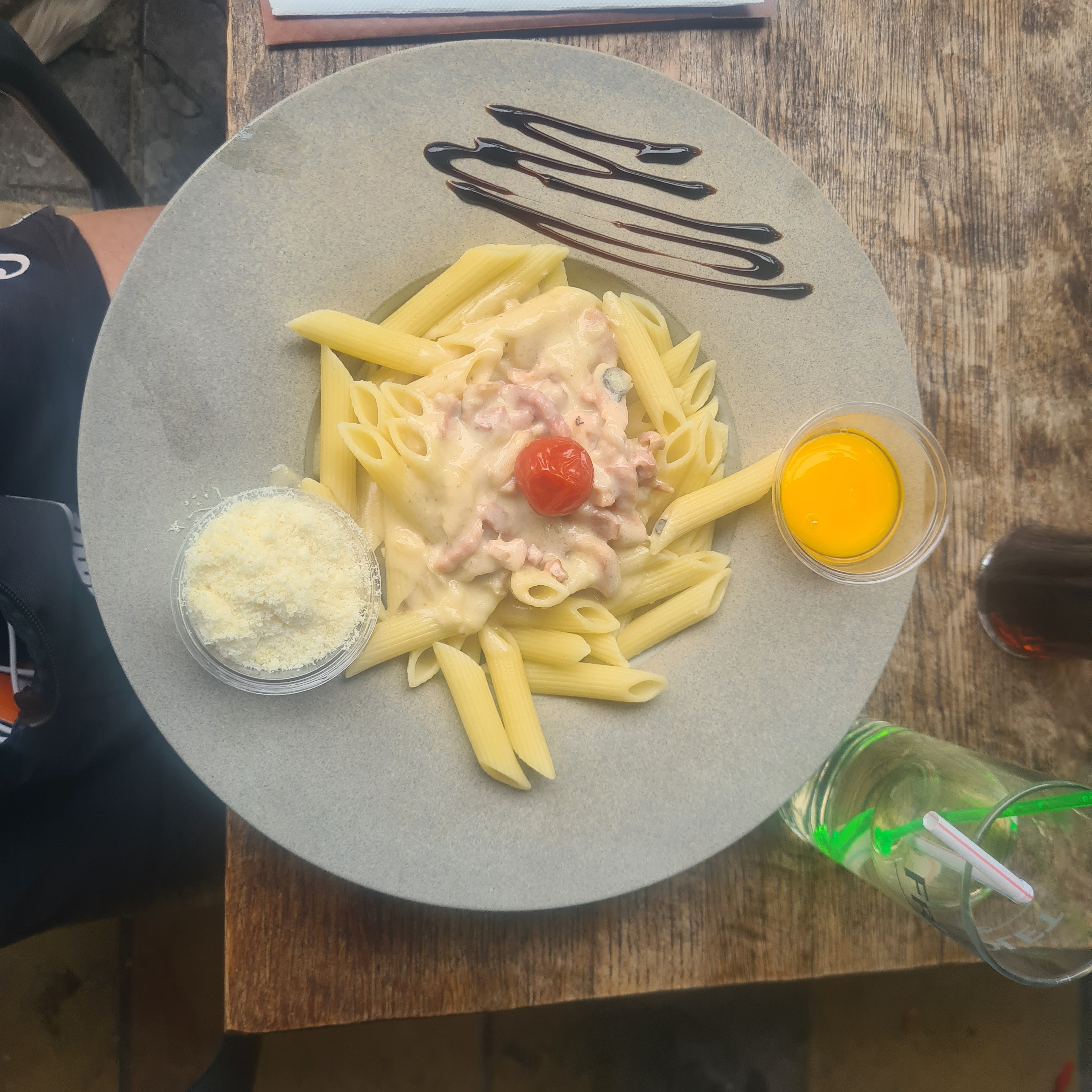 Repas correct, nous avons pris un plat de pâte et une tartine, les quantités étaient bien. Concernant le service, il est à revoir... Nous avons eu la sensation que la serveuse en a déjà assez des touristes alors que nous sommes qu'au mois de mai. Dommage...