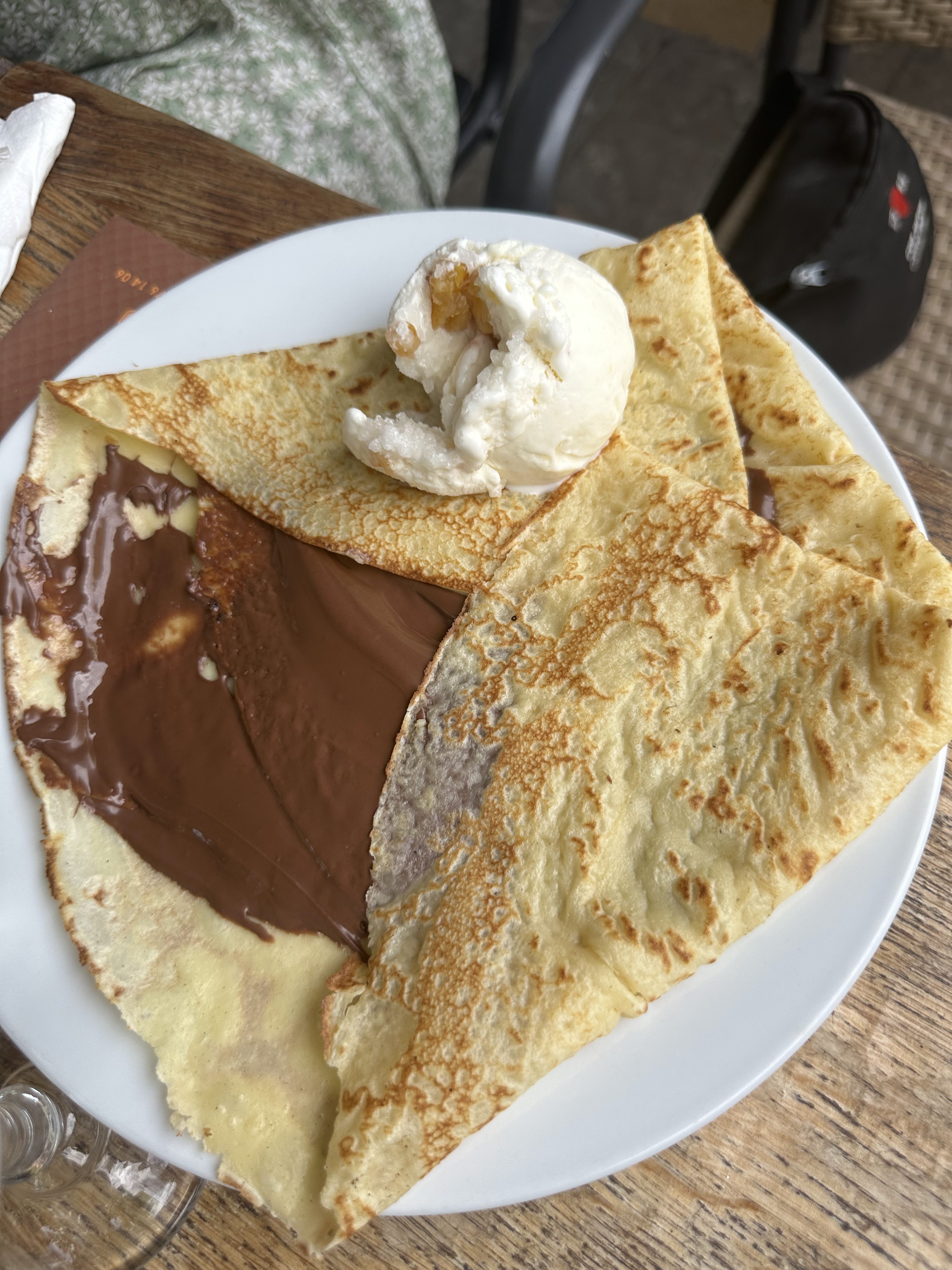 Une brasserie snack crêperie sur la place de aigues mortes très généreuse Des crêpes au top merci de votre accueil et générosité. A très vite On se régale avec le chocolat