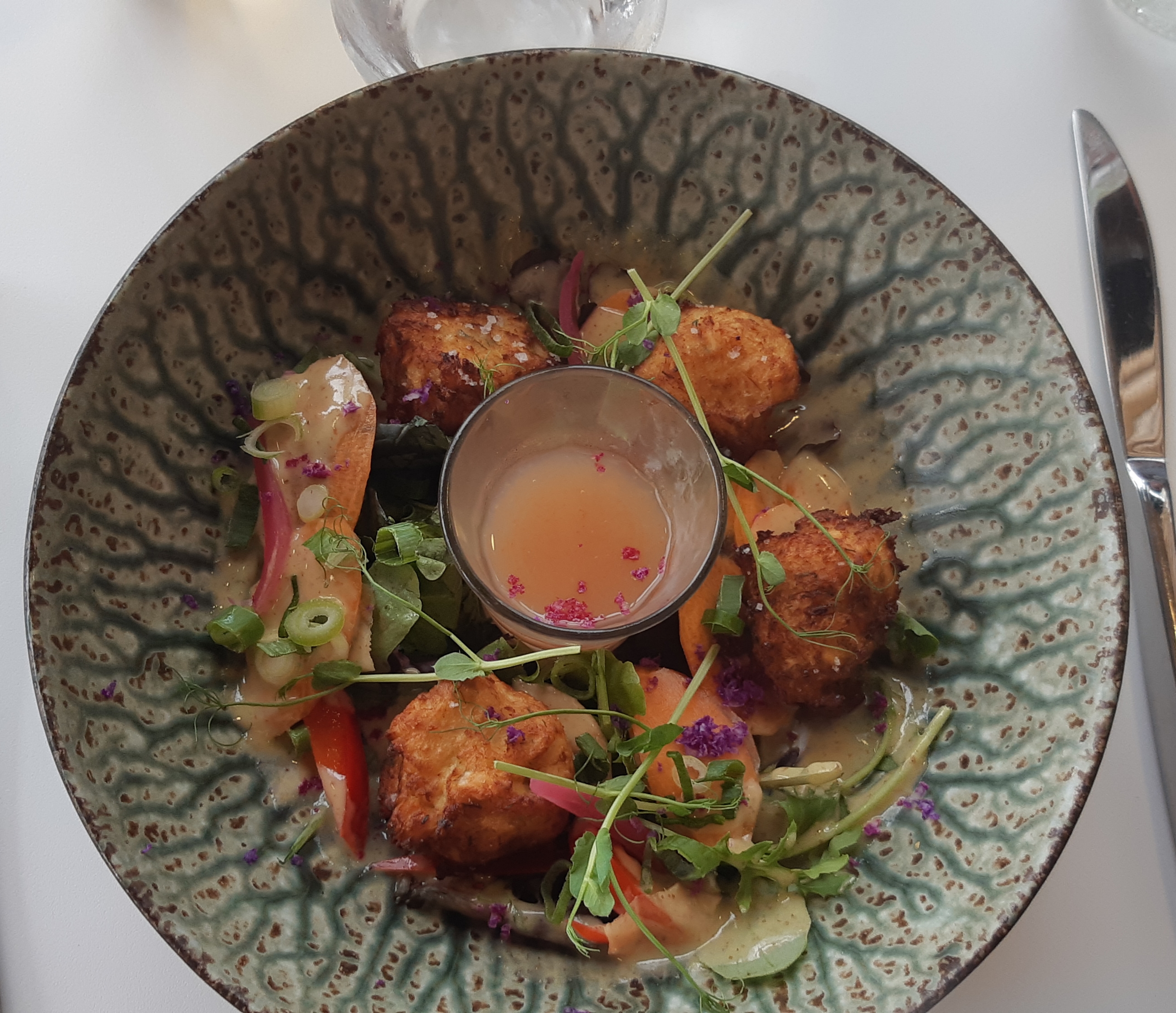 Très beau cadre, personnel agréable, service rapide Les assiettes très bien présentées, mets très bons. Le steak un peu trop cuit à mon goût pour une demande saignante, par contre viande fondante. J’ai pris un gâteau de maïs 🌽 une tuerie , une vrai découverte. Si je n’ai pas mis 5 étoiles, rien à voir avec la cuisine, mais à mon goût très important, les Wc d’une propreté déplorable et ça même dans le meilleur établissement du monde n’ai pas acceptable