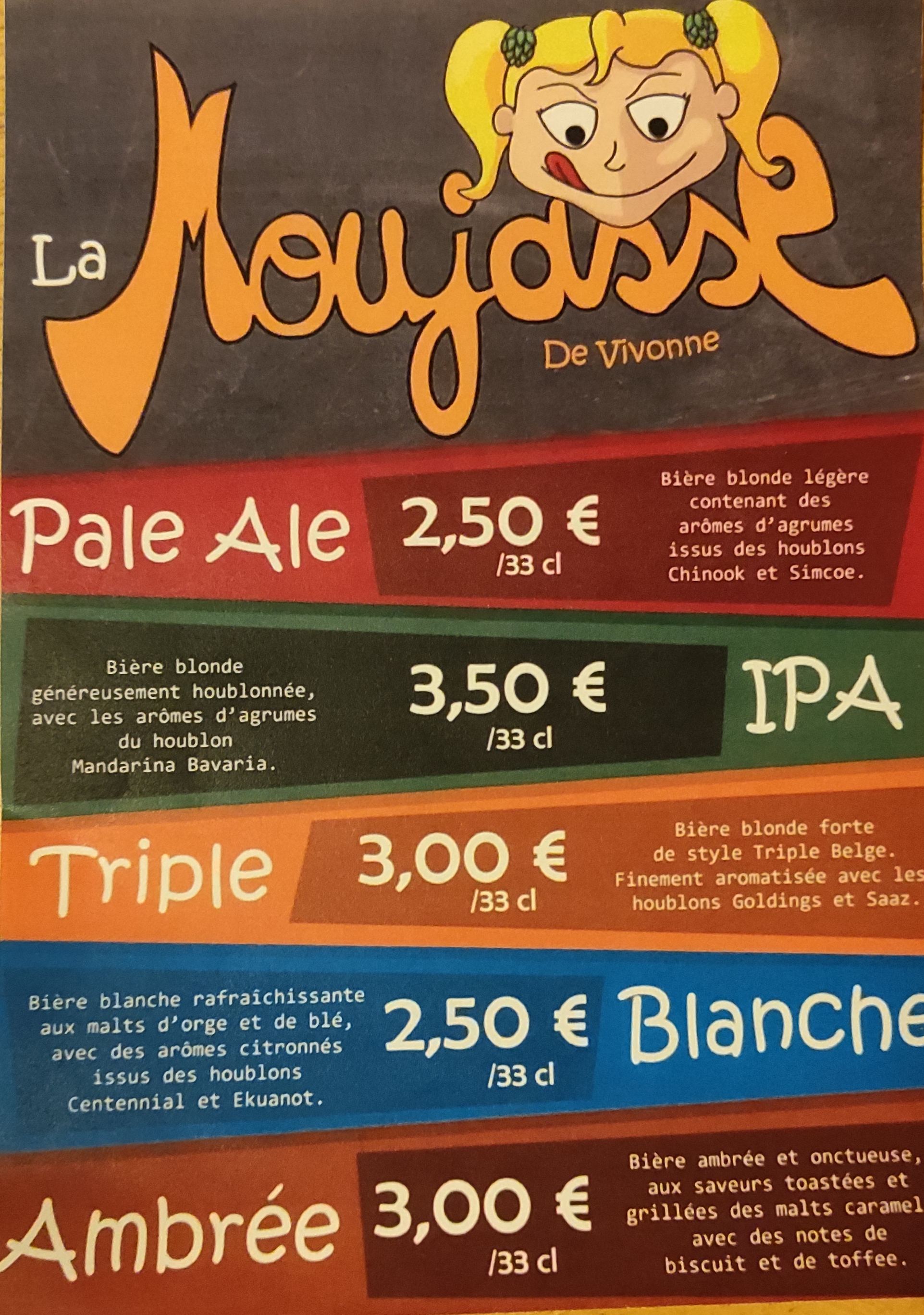 Brasserie artisanale créée par 3 amis associés. De la bière blonde, ambrée, IPA, blanche, triple,,,et tout ça en production locale à Vivonne. Équipe sympathique qui fabrique des produits de qualité. Mérite d'être connu !!!!