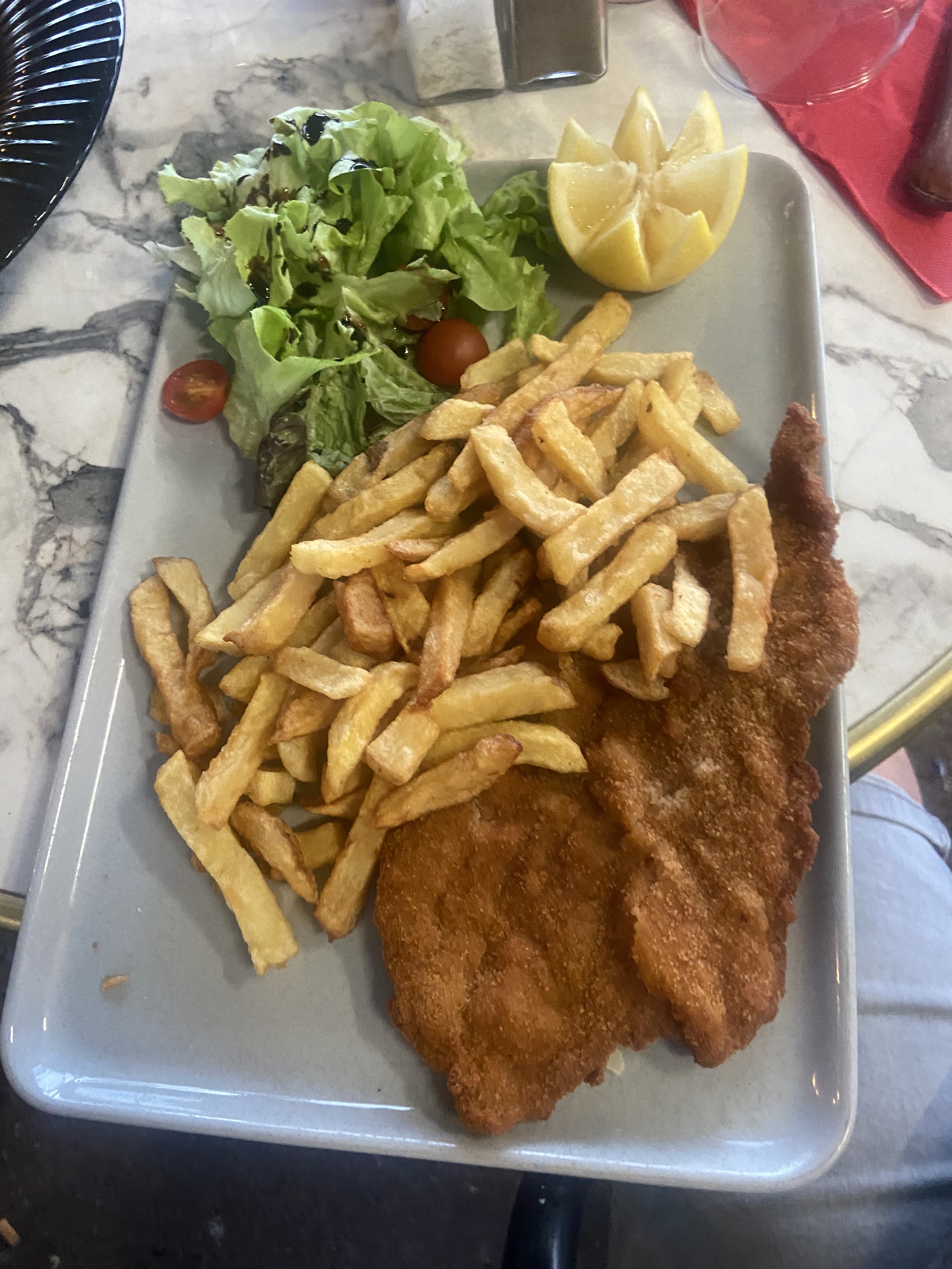 Excellent repas. Frites maison 😋 vin corse très bon aussi.