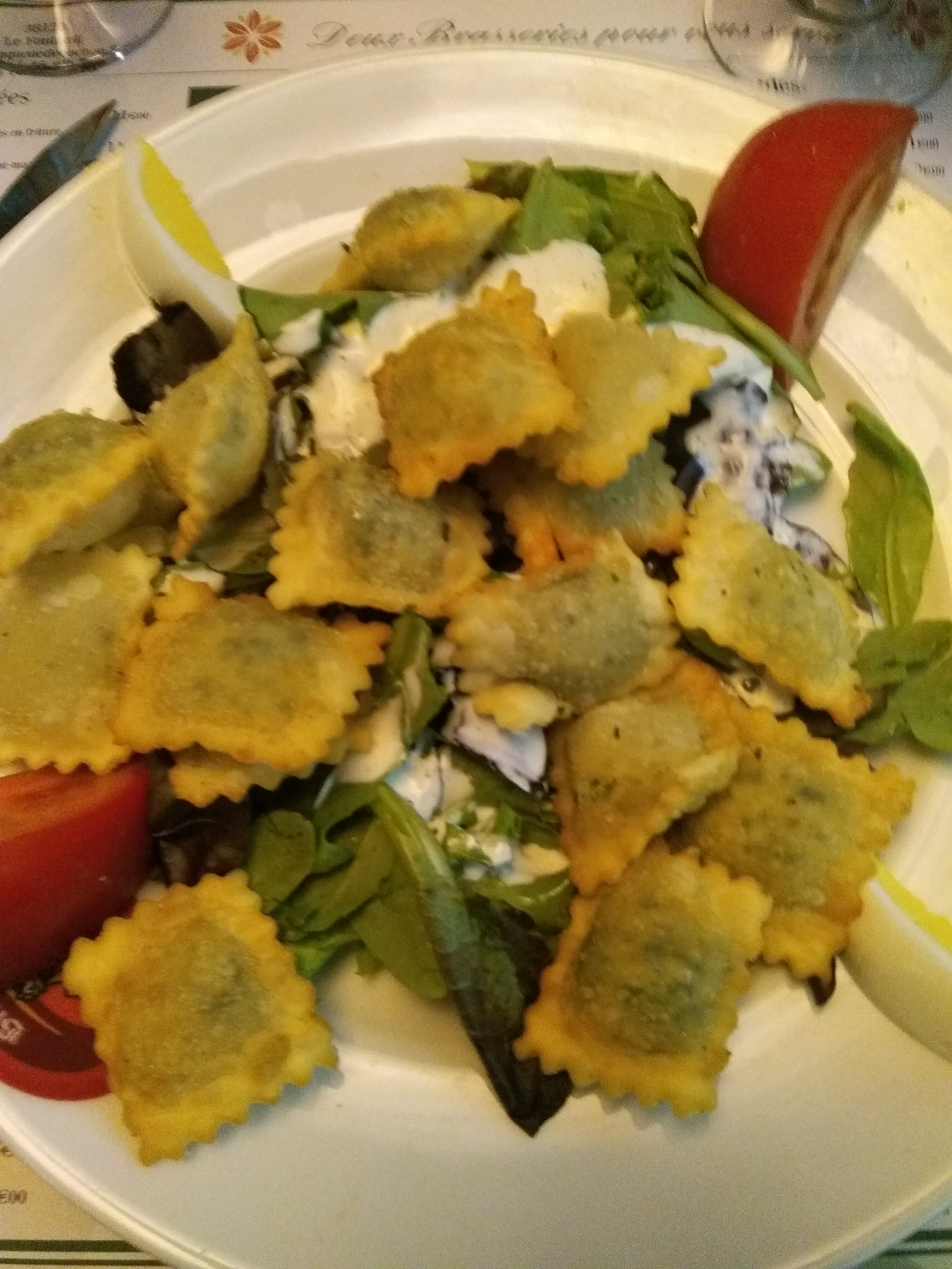 Très bon, généralement un bon service ! Le restaurant est spécialisé dans les ravioles qui sont excellentes. Les viandes, charcuterie et terrines sont aussi excellentes. Il y a une grande salle intérieure et une grande terrasse extérieure qui est couverte. Un peu bruyant mais c'est acceptable. On y reviens avec plaisir !