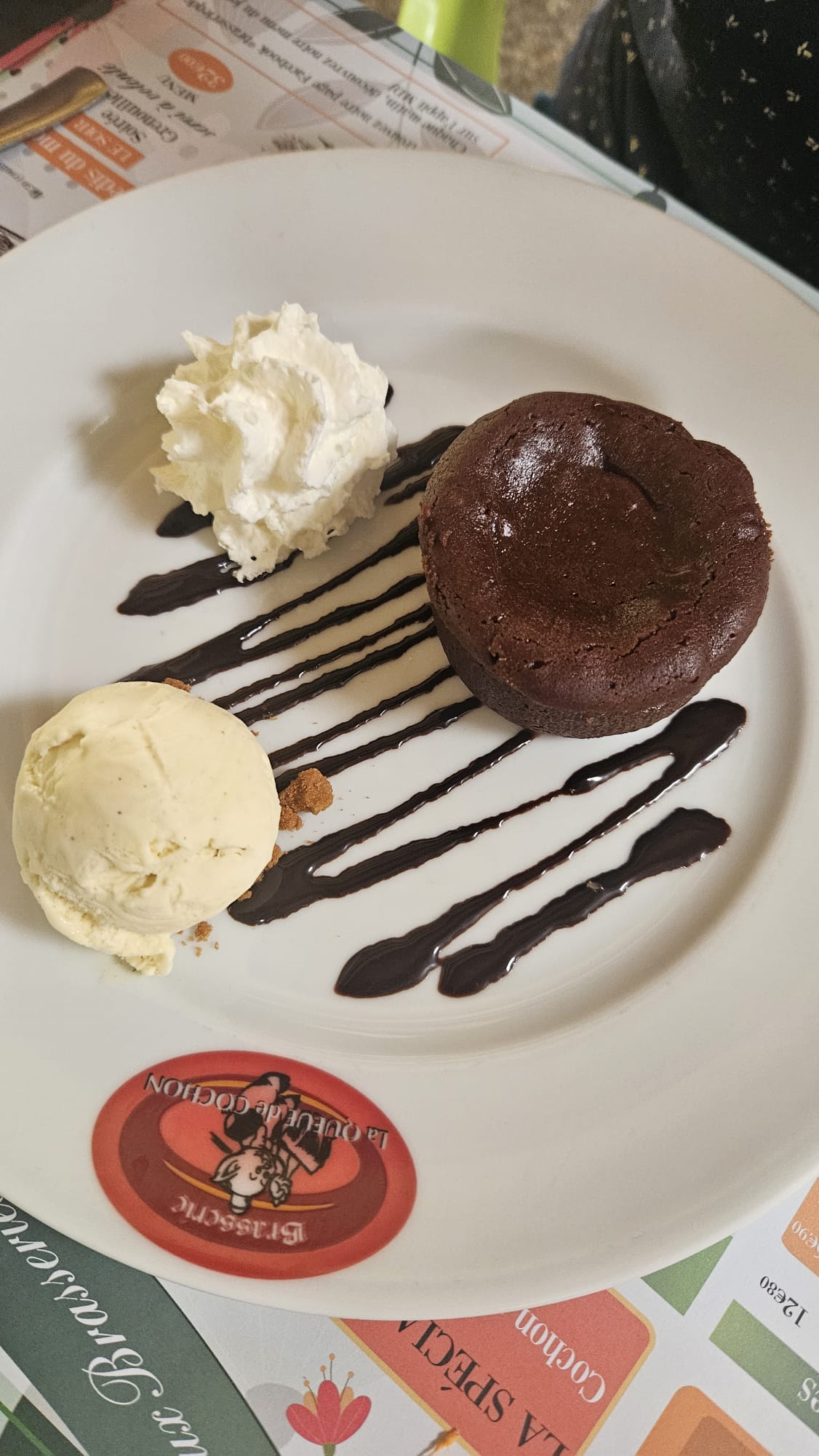 Nous avons passé un très agréable moment de l'accueil à la dégustation des plats ! Serveuses souriantes (jeune fille plus qu'agréable) du début jusqu'à à la fin alors qu'il y avait du monde, devient rare de nos jours ! Les cuisses de grenouilles au top bien assaisonnées, copieuses... Bref un régal ! Pour le dessert juste un avis personnel pour le fondant au chocolat il était froid. Je trouve cela meilleur tiède ! Mais sinon vraiment faites le détour. Nous reviendrons sans aucun doute !