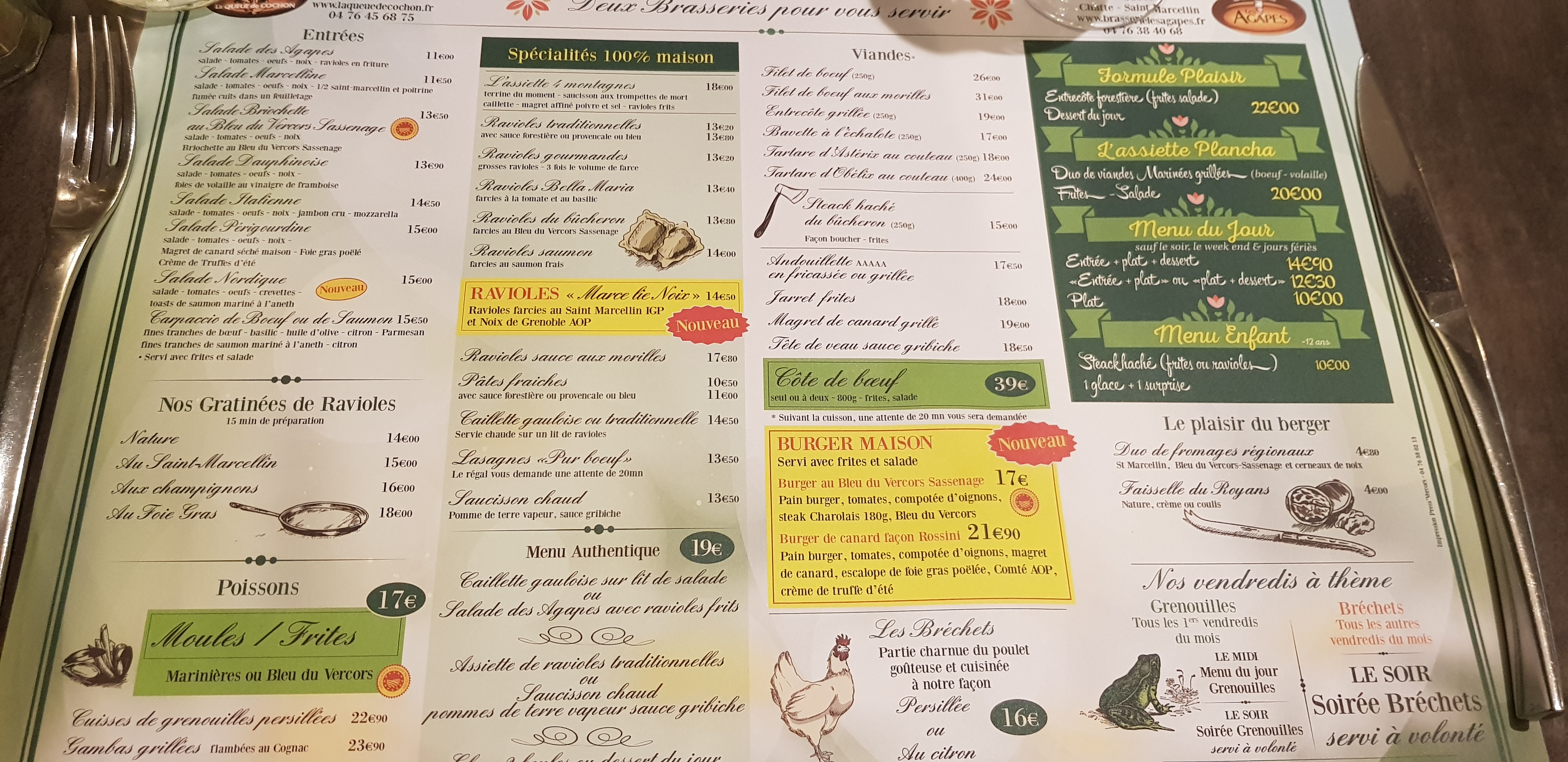 Les propriétaires on récemment changé. Ils ont donné un face lift à cette brasserie et ils ont surtout changé le menu et probablement l'équipe aussi. La cuisine est devenu très bon avec surtout des spécialités autour des ravioles. J'ai essaie deux salades, très très bien faites. Ravioles aux morilles aussi très sympa. La nouvelle équipe est très accueillant et efficace. Le rapport qualité/prix très bien. Parfait pour un déjeuner en famille.