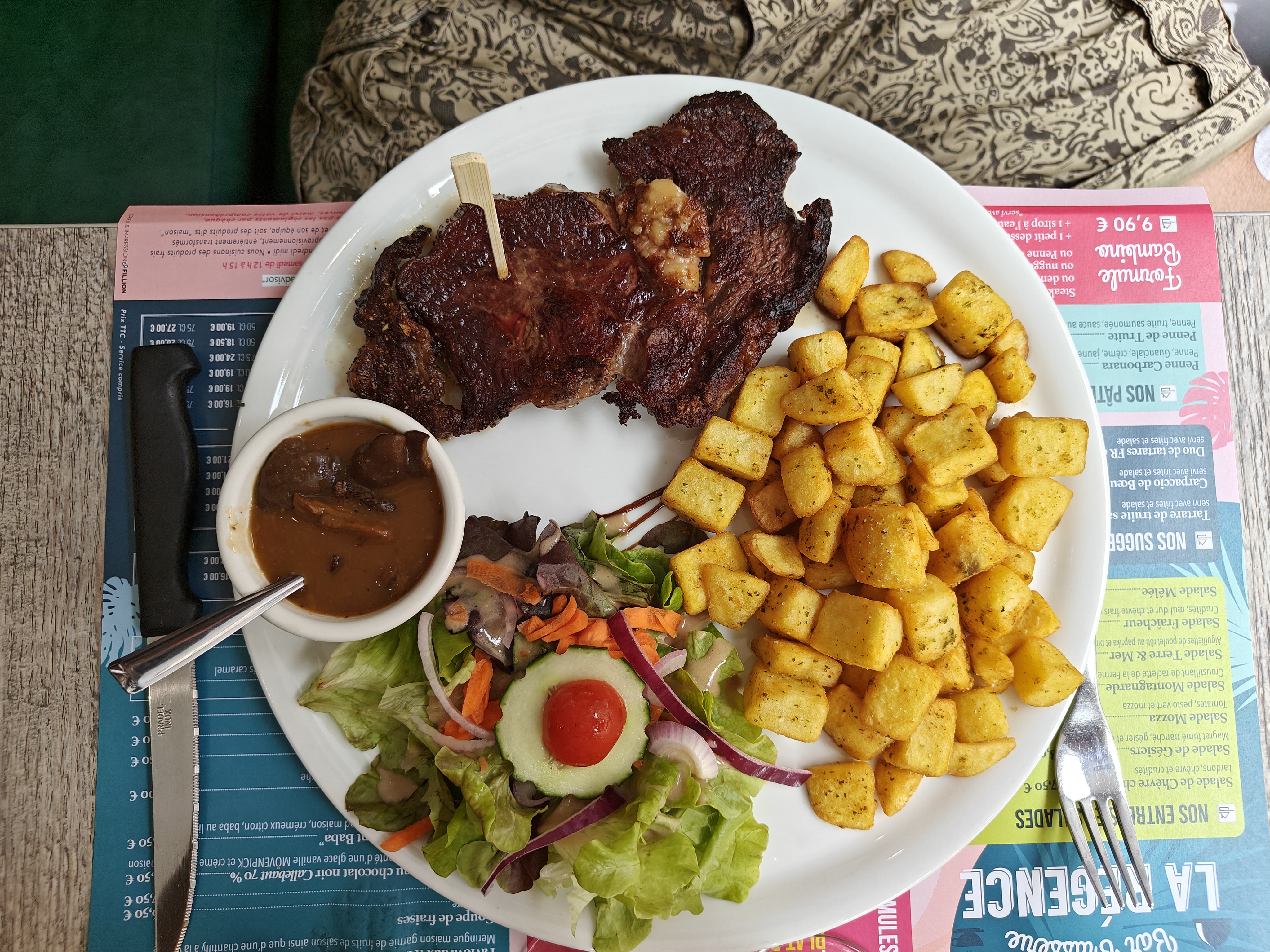 La sauce n'est que de la crème avec des Girolles en aucun cas une sauce mijotee Les frites ne sont pas des frites maisons