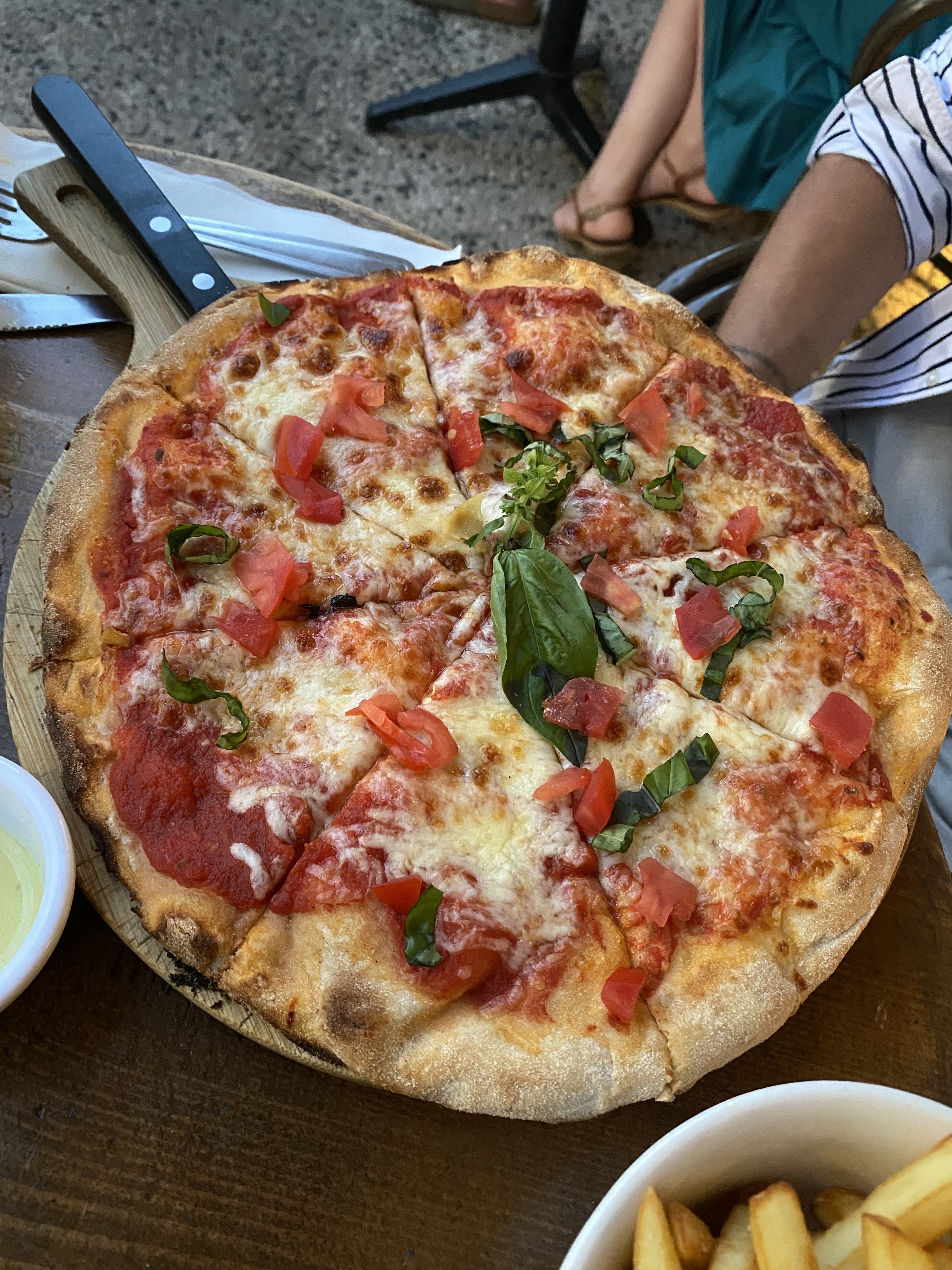 J'ai réservé une table ici car nous étions à proximité. Non seulement trois membres du personnel n’ont pas reconnu notre arrivée, mais ils nous ont pratiquement poussés à l’écart alors qu’ils vaquaient à leurs occupations. Le responsable nous a finalement dit de le suivre dehors (vent fort et frais !). Je n’ai pas aimé quand nous avons dit que nous voulions être à l’intérieur ! Nous avons été ignorés - après des siècles, une gentille famille française à la table voisine leur a demandé de nous donner le menu car ils voyaient que nous ne voulions pas faire d'histoires ! La serveuse grincheuse n'était pas amusée. Elle a ensuite pris les commandes de tout le monde à proximité, sauf nous ! Nous nous sommes sentis très mal accueillis. Finalement, nous avons eu nos boissons puis quelques pizzas moyennes. Je dirais que le personnel ici est désagréable et que le responsable essaie d'être cool et branché. Vous pouvez être ces choses-là, mais aussi poli !