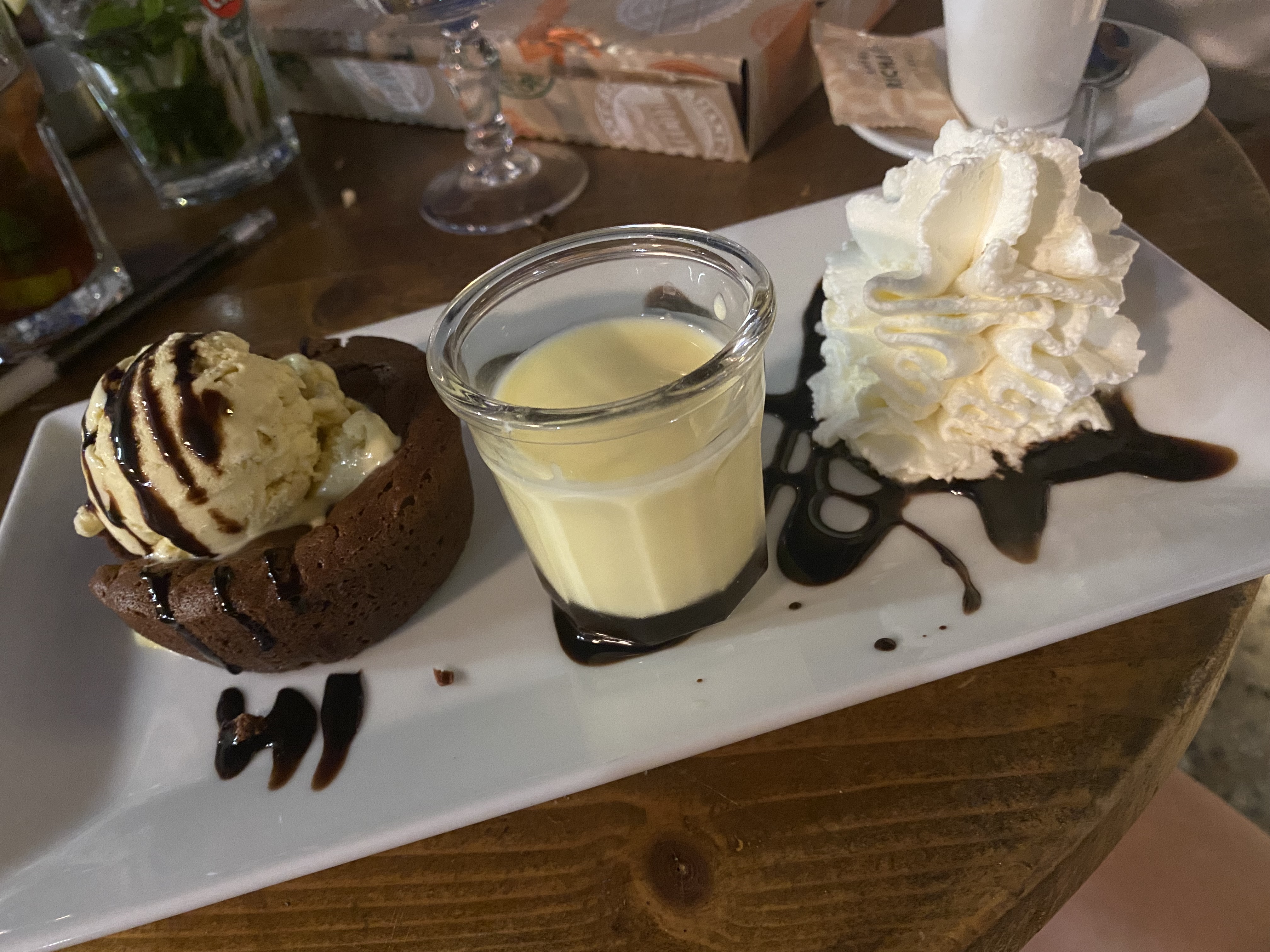 Très bon service rapide brochettes très bonnes. Dessert un peu cher. Mais bon de temps en temps on se fait plaisir.
