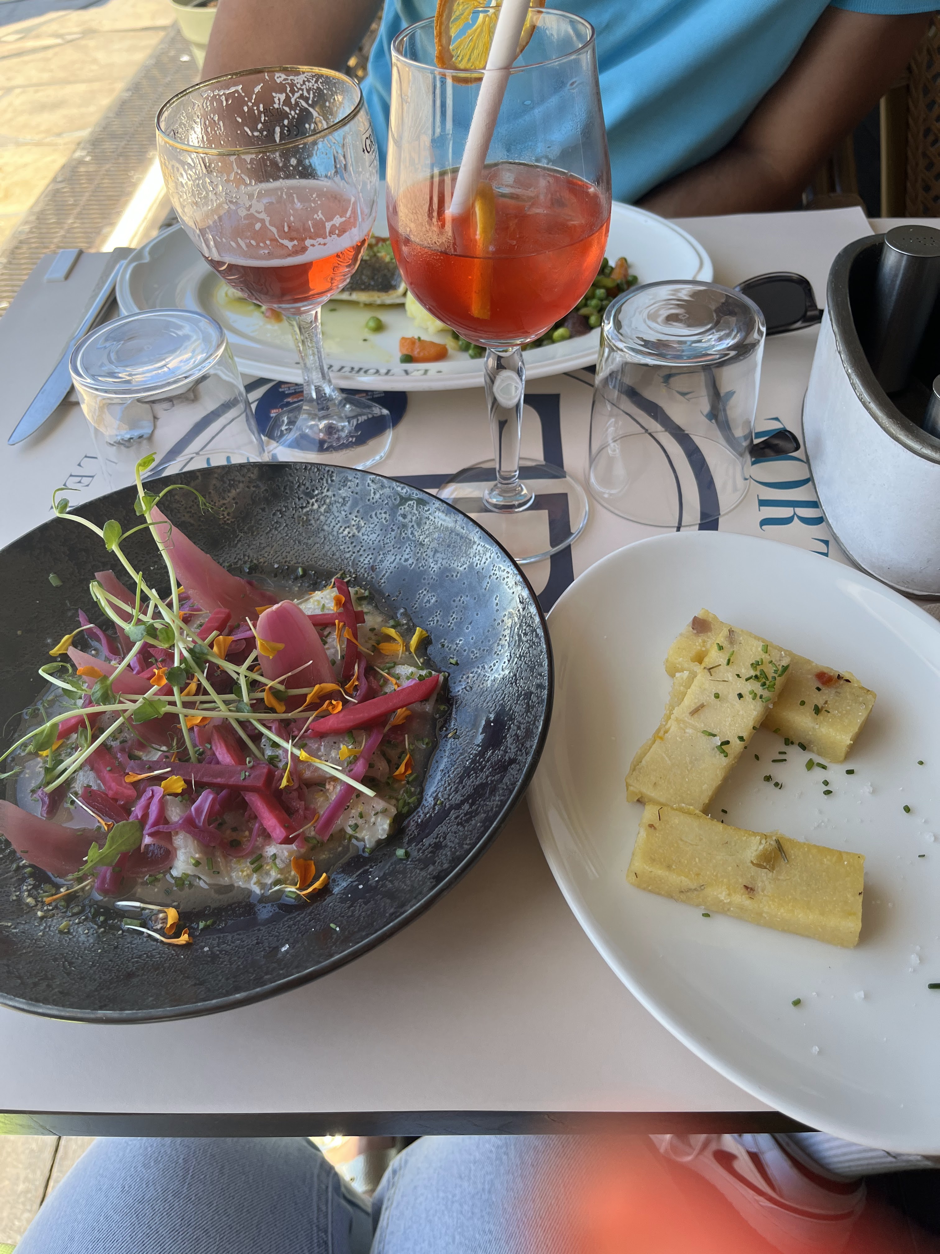 Plat qui manquaient cruellement de goût. Le riz du risotto était encore dur. Les gambas apportaient un peu de goût mais pas assez. Cadre quand même agréable et serveurs souriants. Si vous voulez un joli cadre face au port c'est bon mais pour un repas de qualité ce n'est la bonne adresse.