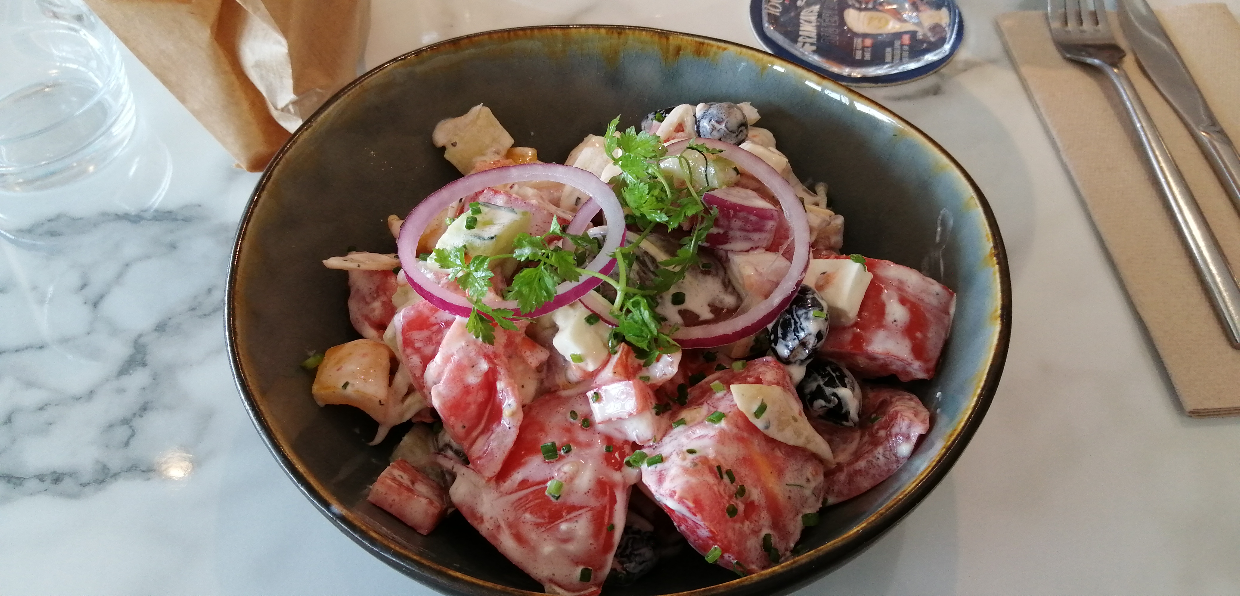 Commander une salade Caesar à 18€. Service assez rapide malgré la fréquentation. Dans la salade il a fallu chercher la tomate, une tomate cerise couper en 2, idem pour l'oeuf qui n'était même pas complet. Et surtout beaucoup beaucoup de croutons. Au début, la couleur m'a fait croire que c'était des morceaux de poulet....Bon mais ne vaut pas les 18€, je n'y retournerai pas