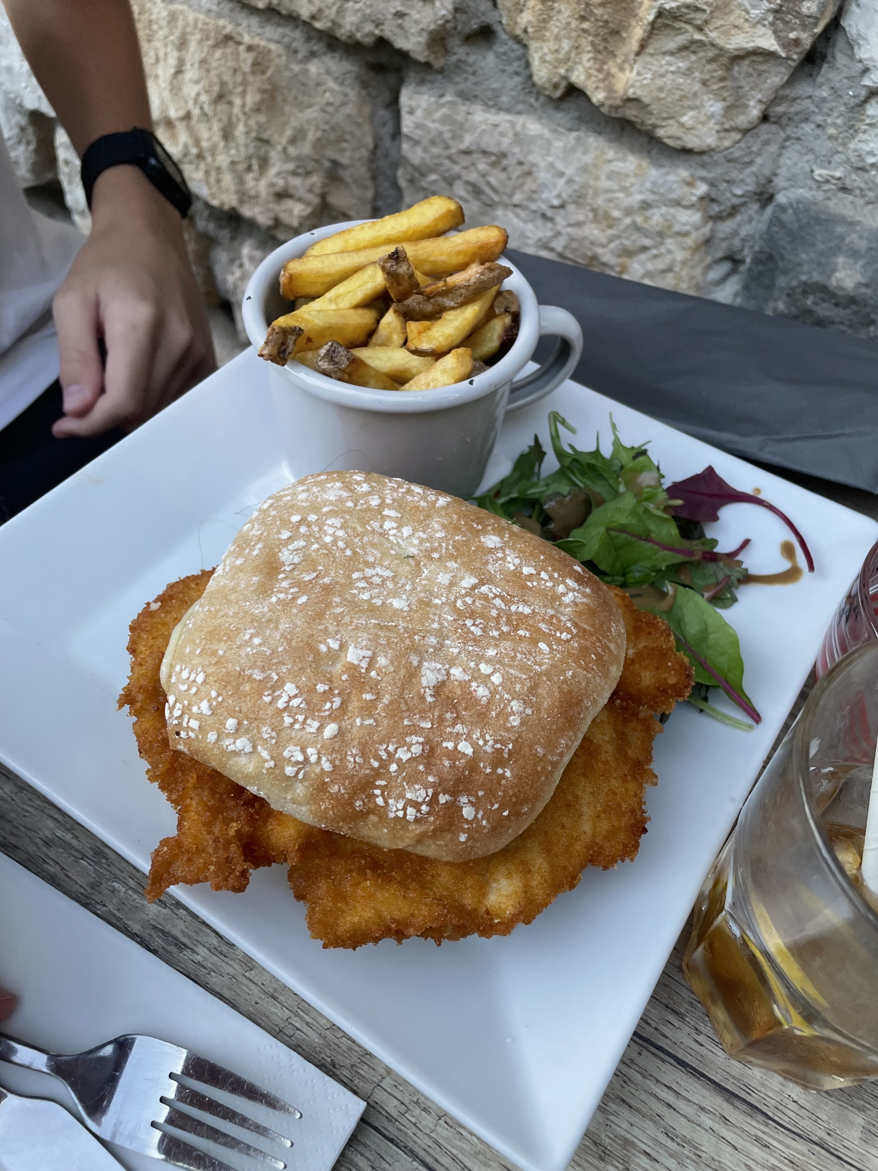 Une belle découverte Produits frais , frites maison Salade césar parfaite Café excellent Service rapide et souriant Avec le soleil sur la place du marché ,que demander de plus nous reviendrons