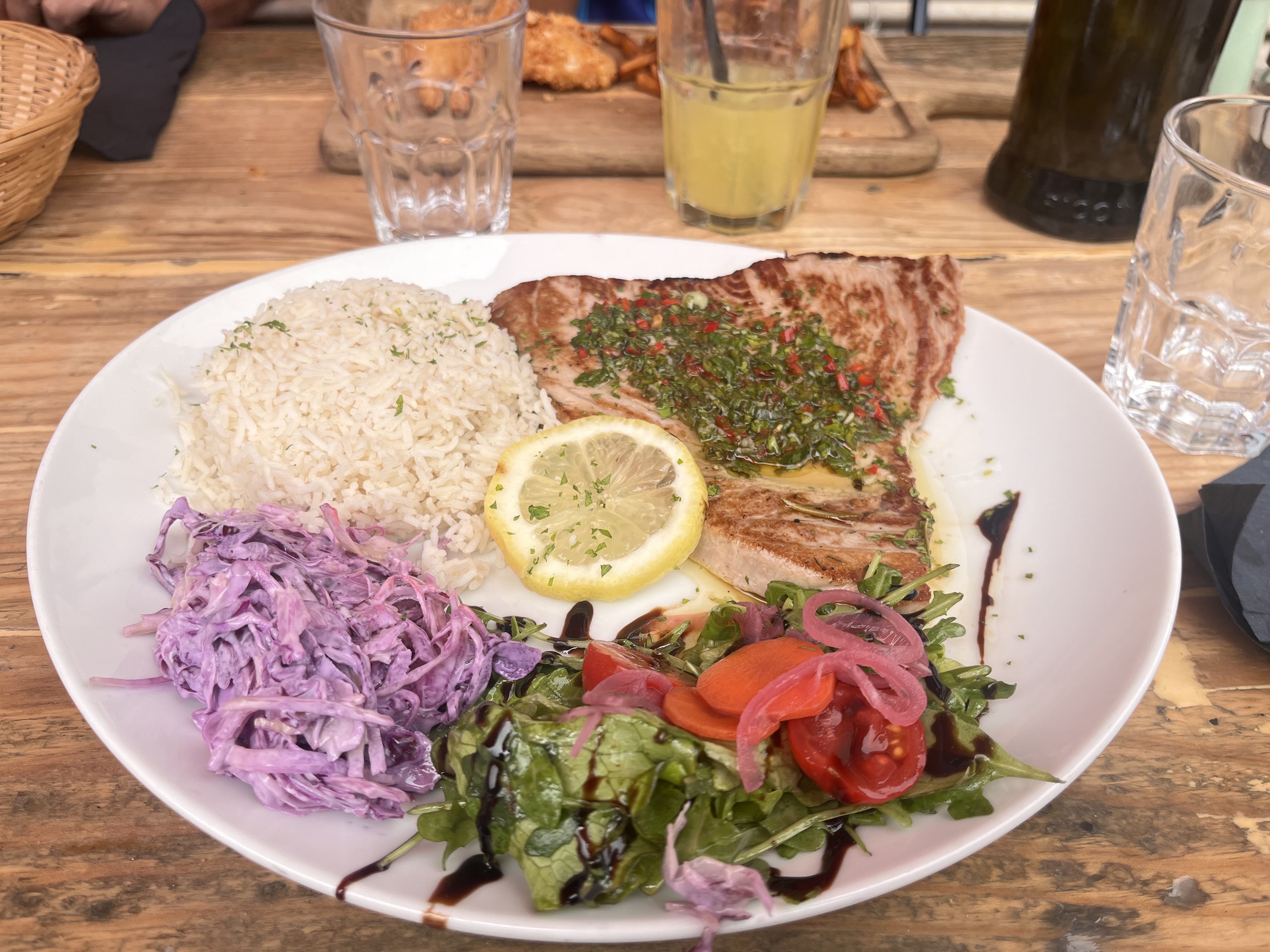 Super endroit, repas du midi pris en famille avec deux enfants 8 et 12 ans. Contents de tout ce que nous avons pris, filet mignon, steak de thon, tapas et nuggets pour le plus petit. Agréablement surpris tout est bon et fait maison jusqu’au nuggets ! Bon choix de bières locales. Serveurs très sympathiques et terrasse agréable. Bref une bonne adresse !