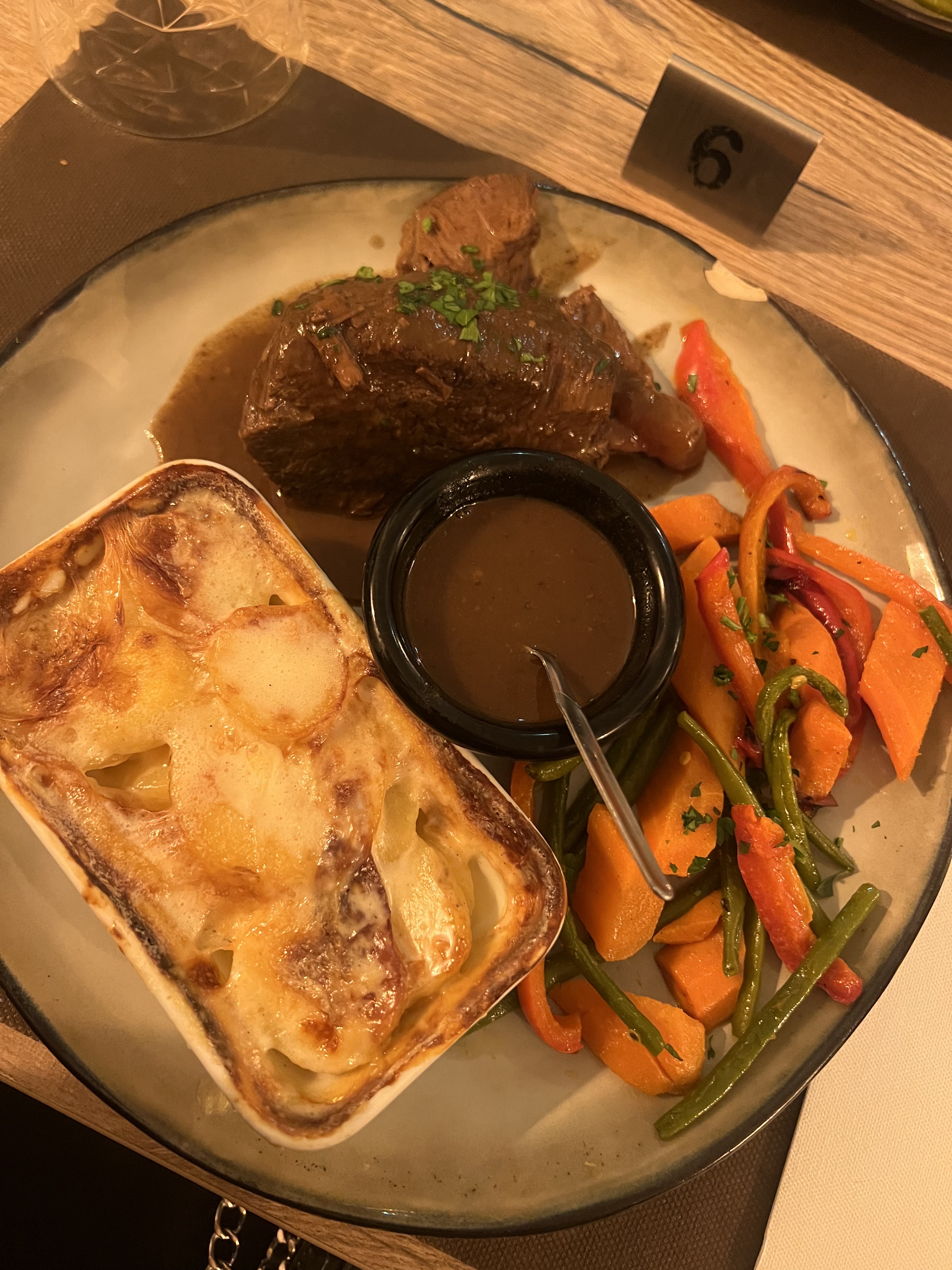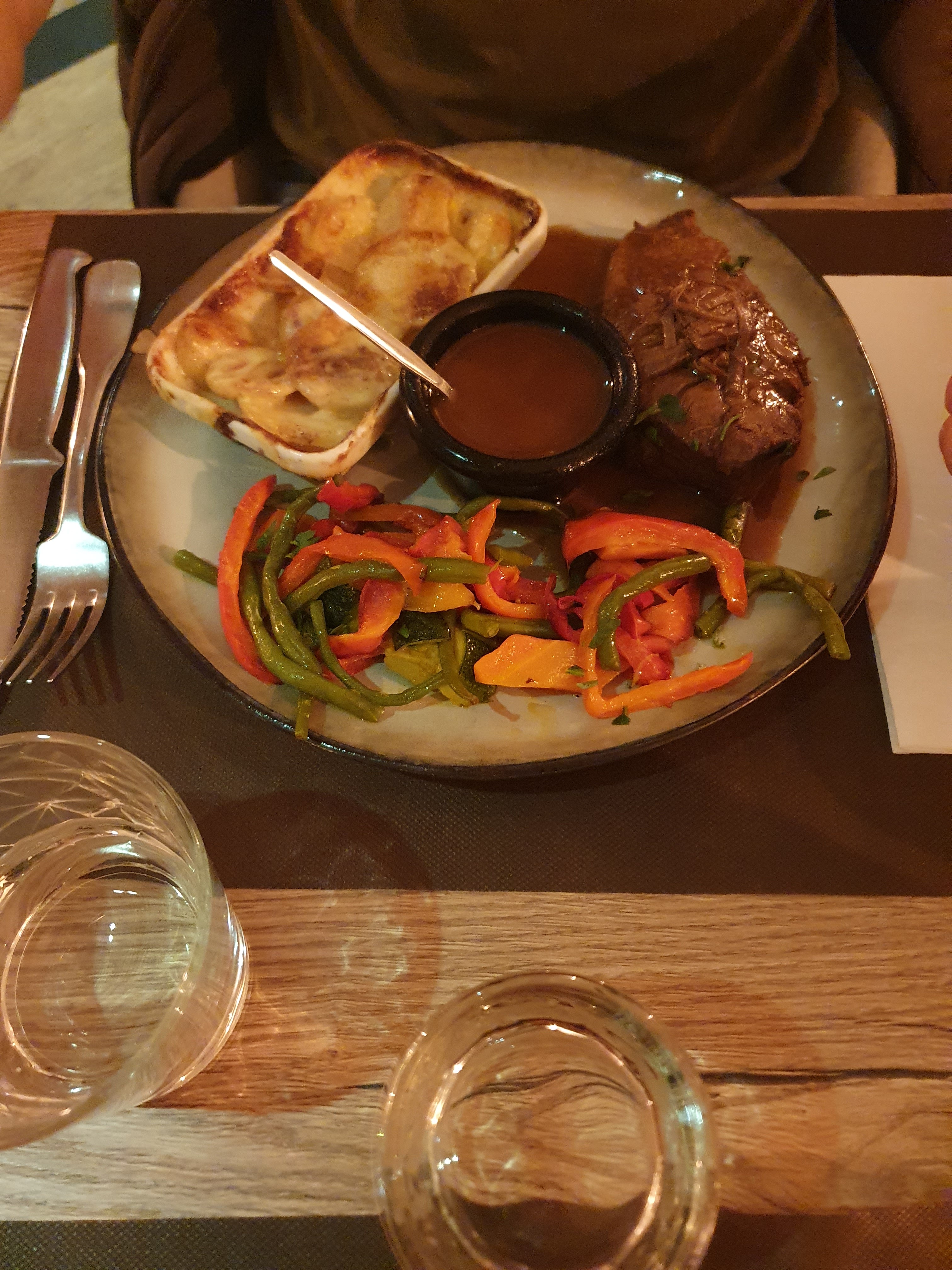Restaurant beau et bon, l'intérieur est calme et bien décoré, les plats sont succulents et ont du goût. Viande tendre à l'intérieur le bœuf de cuisson 12h c'est un délice et l'escalope savoyarde pareil. Prix correct. merci pour ce moments, à bientôt.