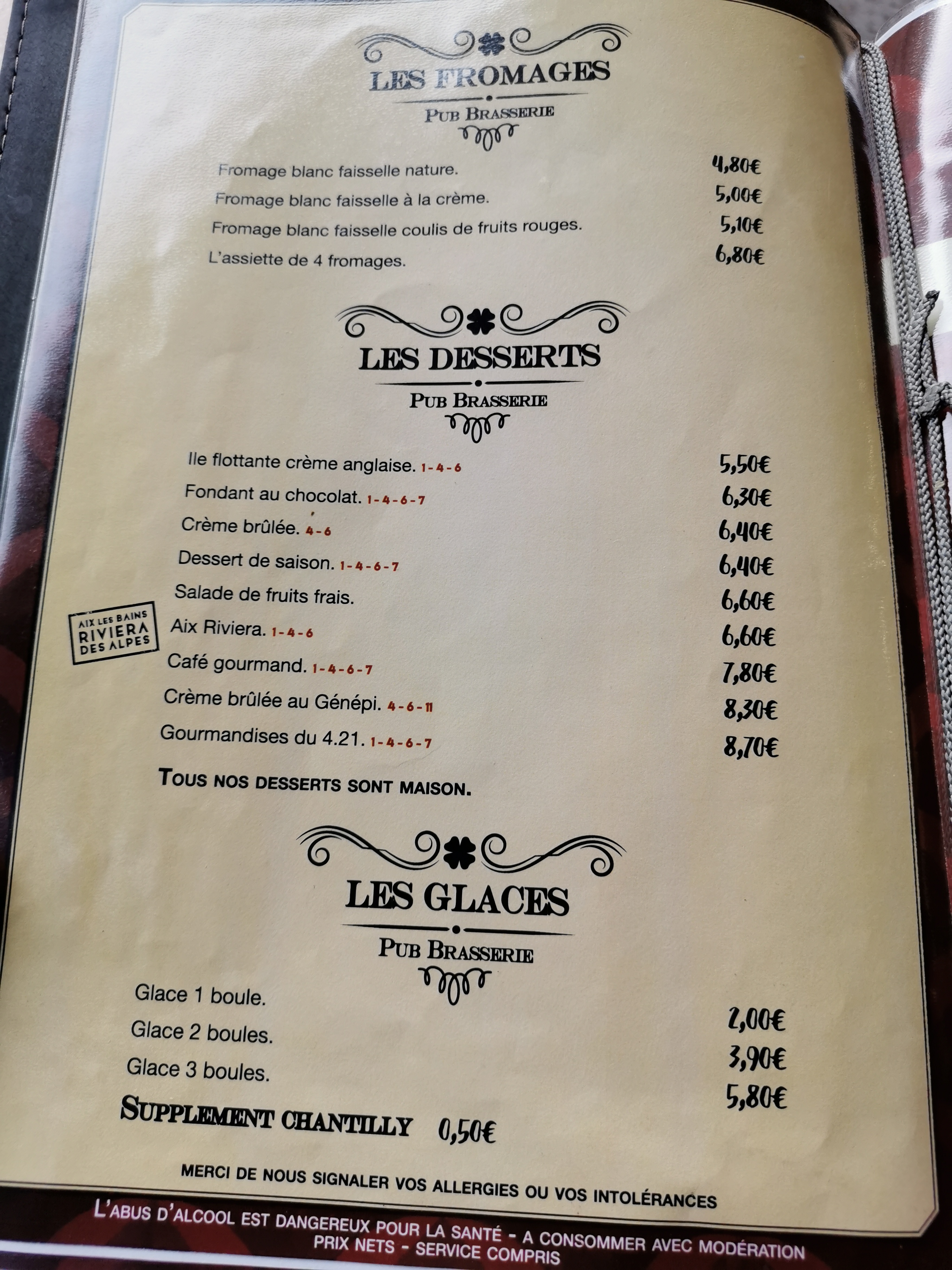 Bonne nourriture bons produits. Tarifs un peu élevés mais comme toutes les brasseries à aix les bains je dirais. Serveurs et serveuses agréables et à l'écoute.