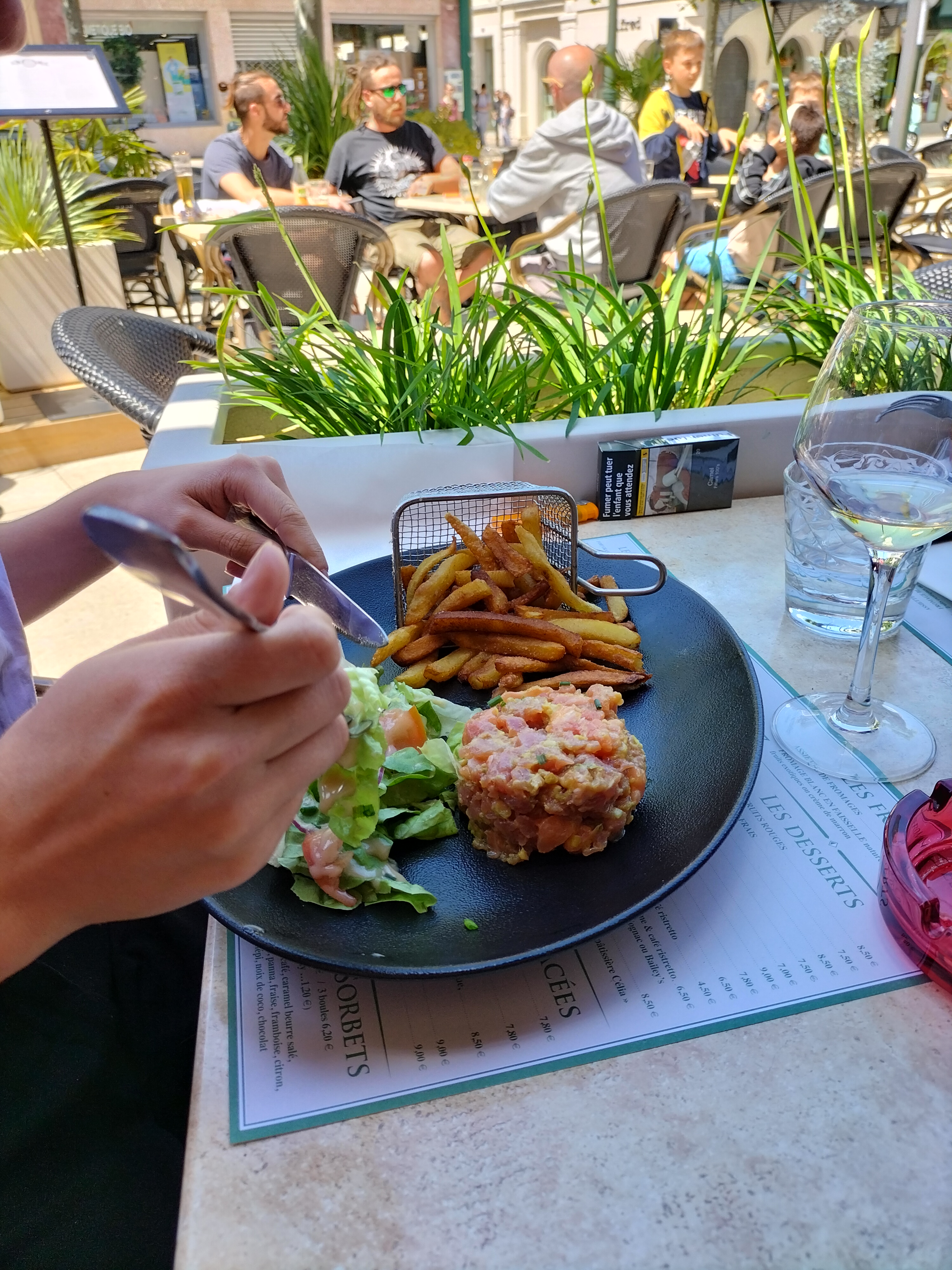 La carte est très appétissante, le personnel est très sympa. Bémol à la dégustation de la salade niçoise, les haricots verts semblent tout droit sortis de leur boîte, les olives noires ne sont pas de vraies olives à la grecque et 2 anchois se battent.. Ça reste bon