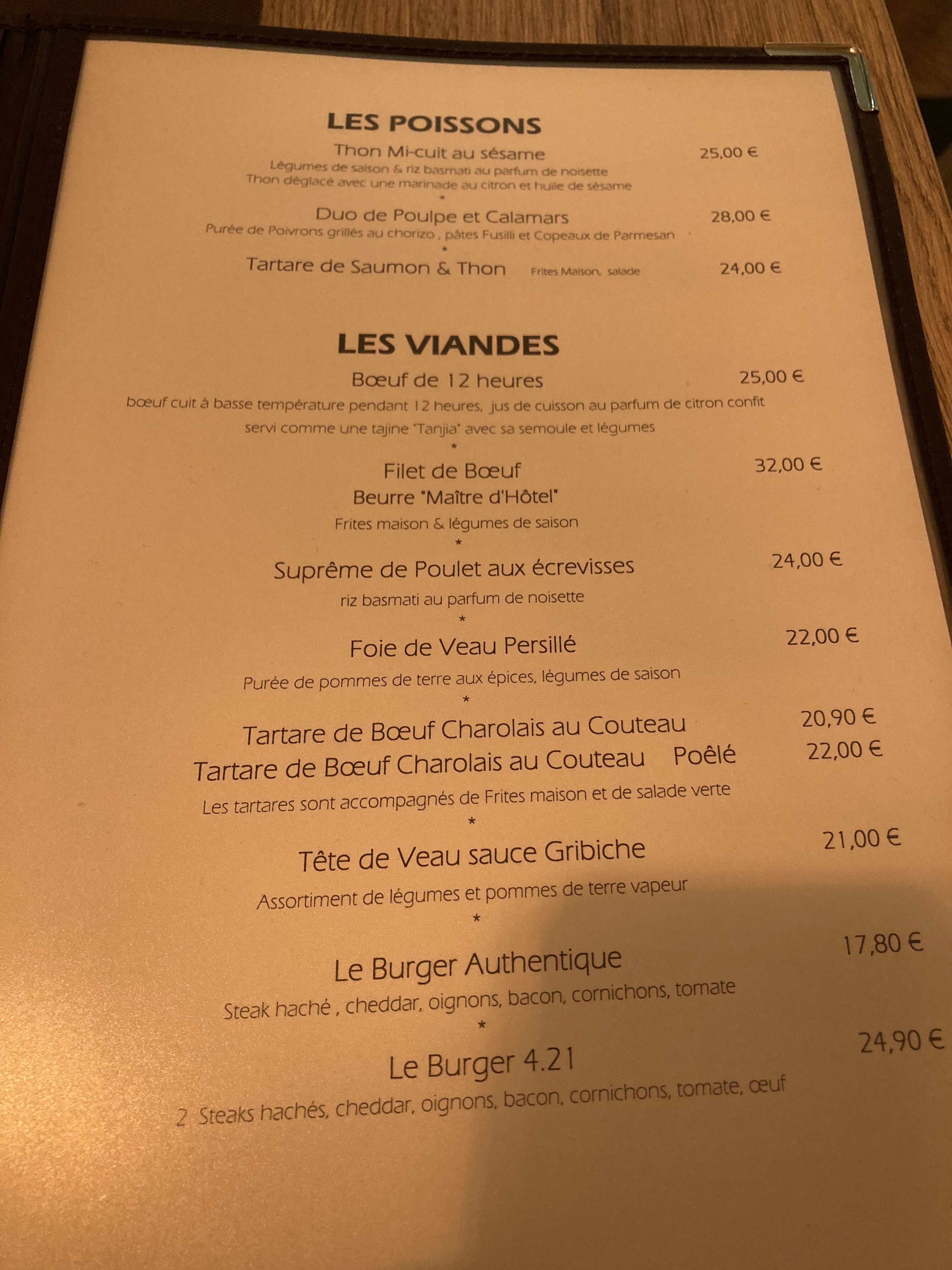 Arrivé un peu par hasard, la brasserie 4.21 est un endroit élégant et plein de charmes. La qualité des produits et la sympathie du personnel fait honneur au lieu. Copieux et savoureux, nous recommandons ! Point bonus: l'excellente tarte tatin ! ----- Arrived a little bit by chance, the Brasserie 4.21 is an elegant and charming place. The quality of the products and the sympathy of the staff do honor to the place. Copious as well as tasty, we recommend! Bonus point: the excellent tarte tatin!