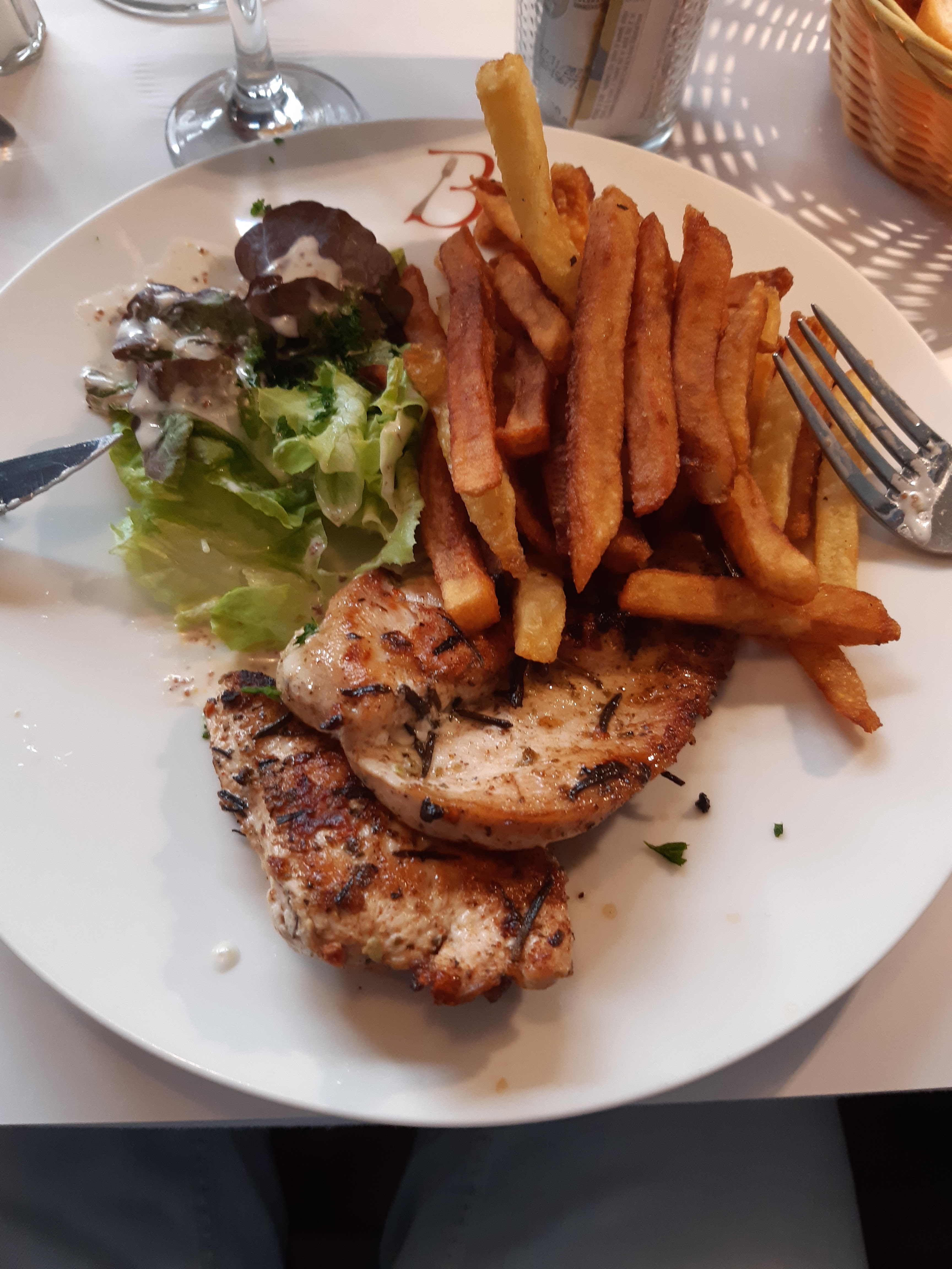 Cadre très joli ,service rapide . bréchets de poulet avec frites/salade excellents. Je recommande !