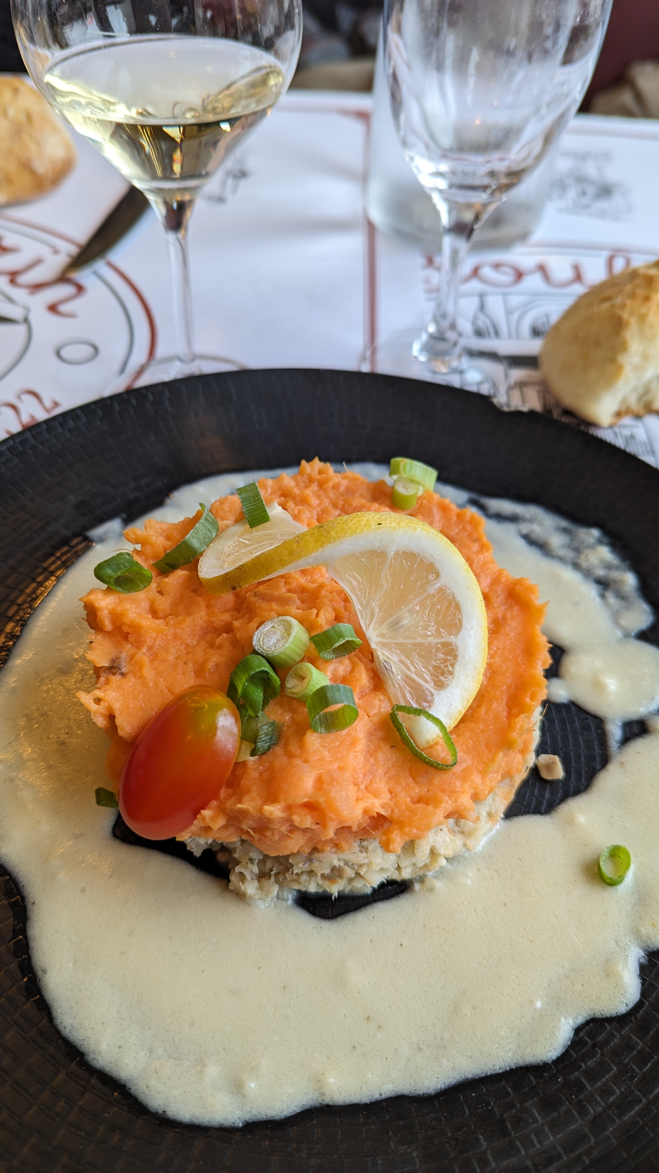 Serveur sympathique, cadre agréable, plats certes bien faits mais qui ne m’ont pas fait rêver.