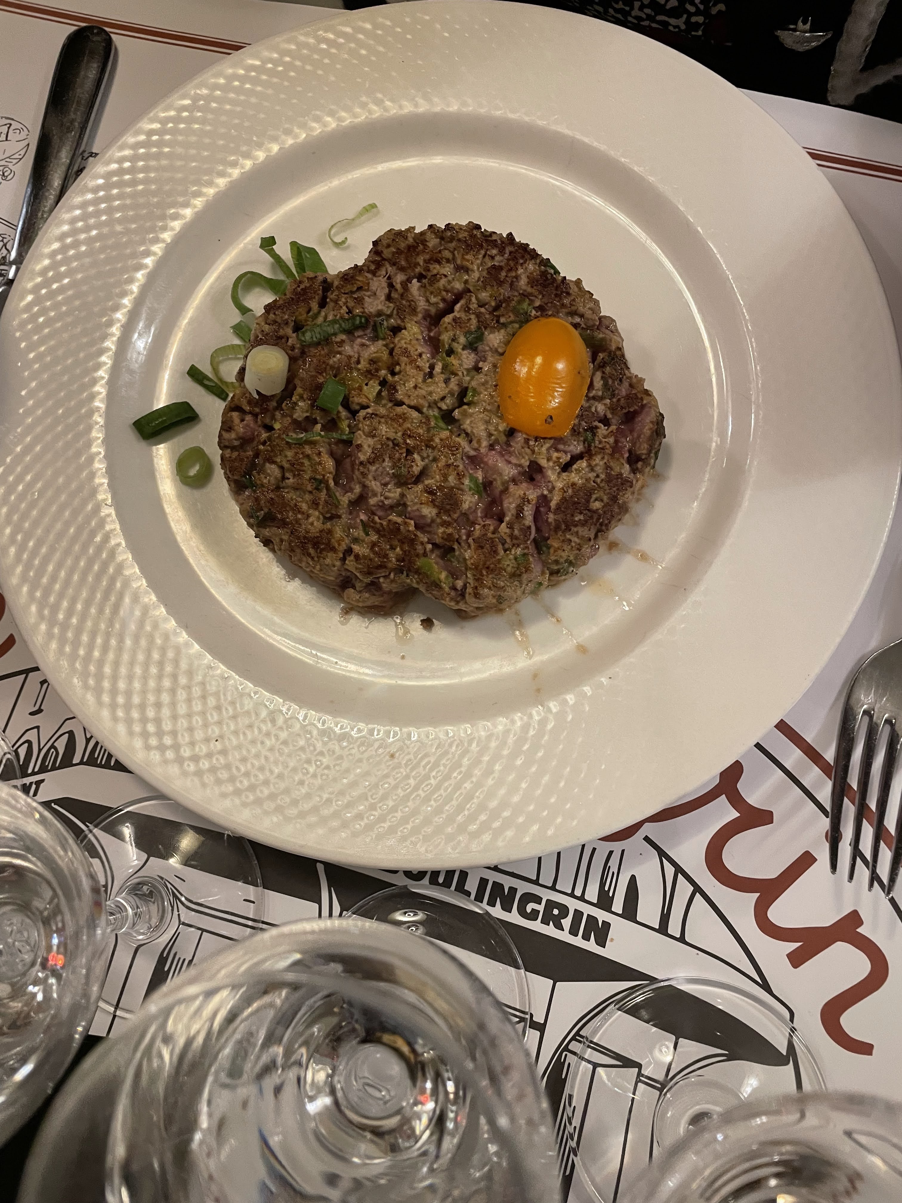 Un peu moins bien de ce à quoi je m'attendais. Service soigné, excellent tartare, frites tiedes, salade un peu fanée avec des bouts mous et amères. Dessert joli, mais sec et sans vraiment de goût.. Surement le menu à 22€ choisi par me voisins de table avait l'air plus appétissant. Dommage.