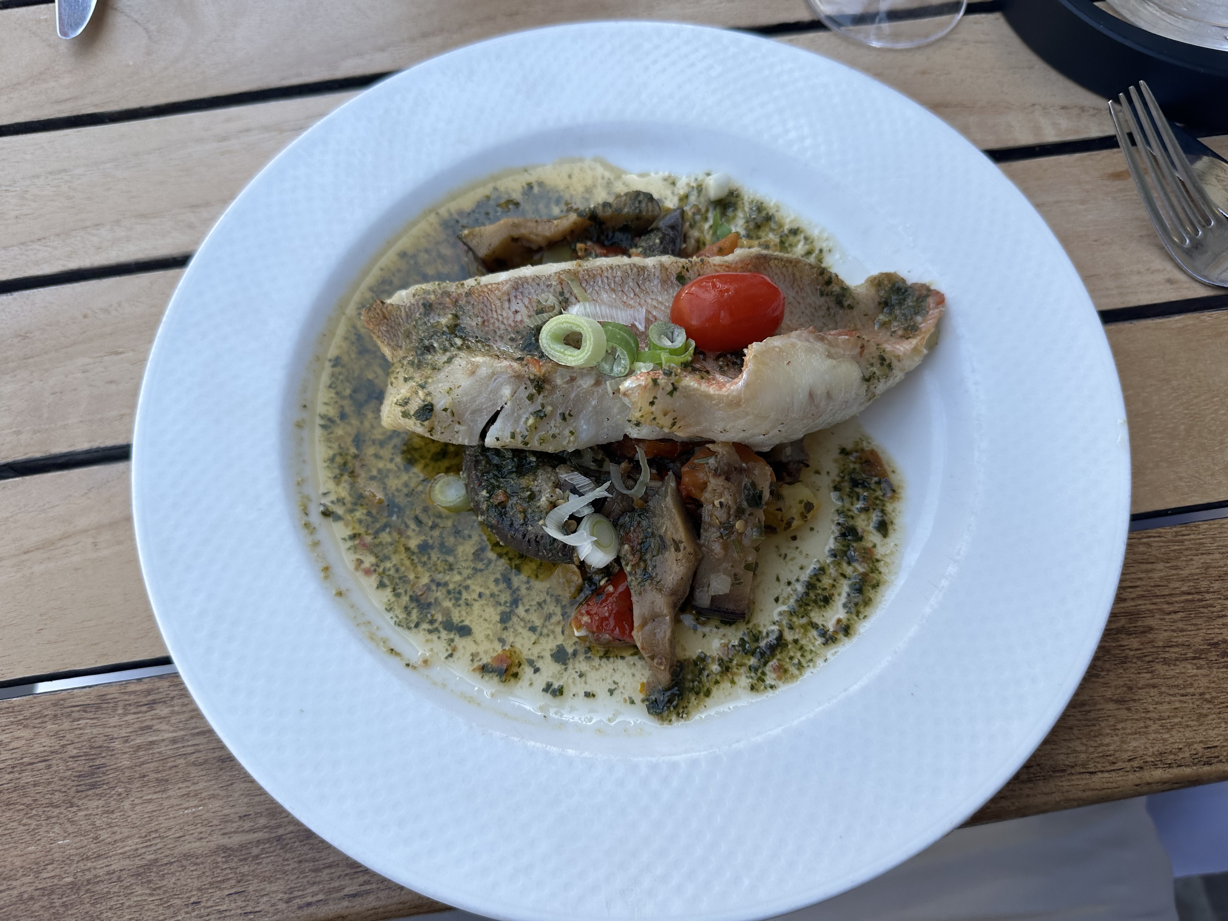 Déçu, l’œuf parfait en entrée était froid et le filet de dorade trop cuit. Nous l’avons mentionné au serveur sans aucun effet.