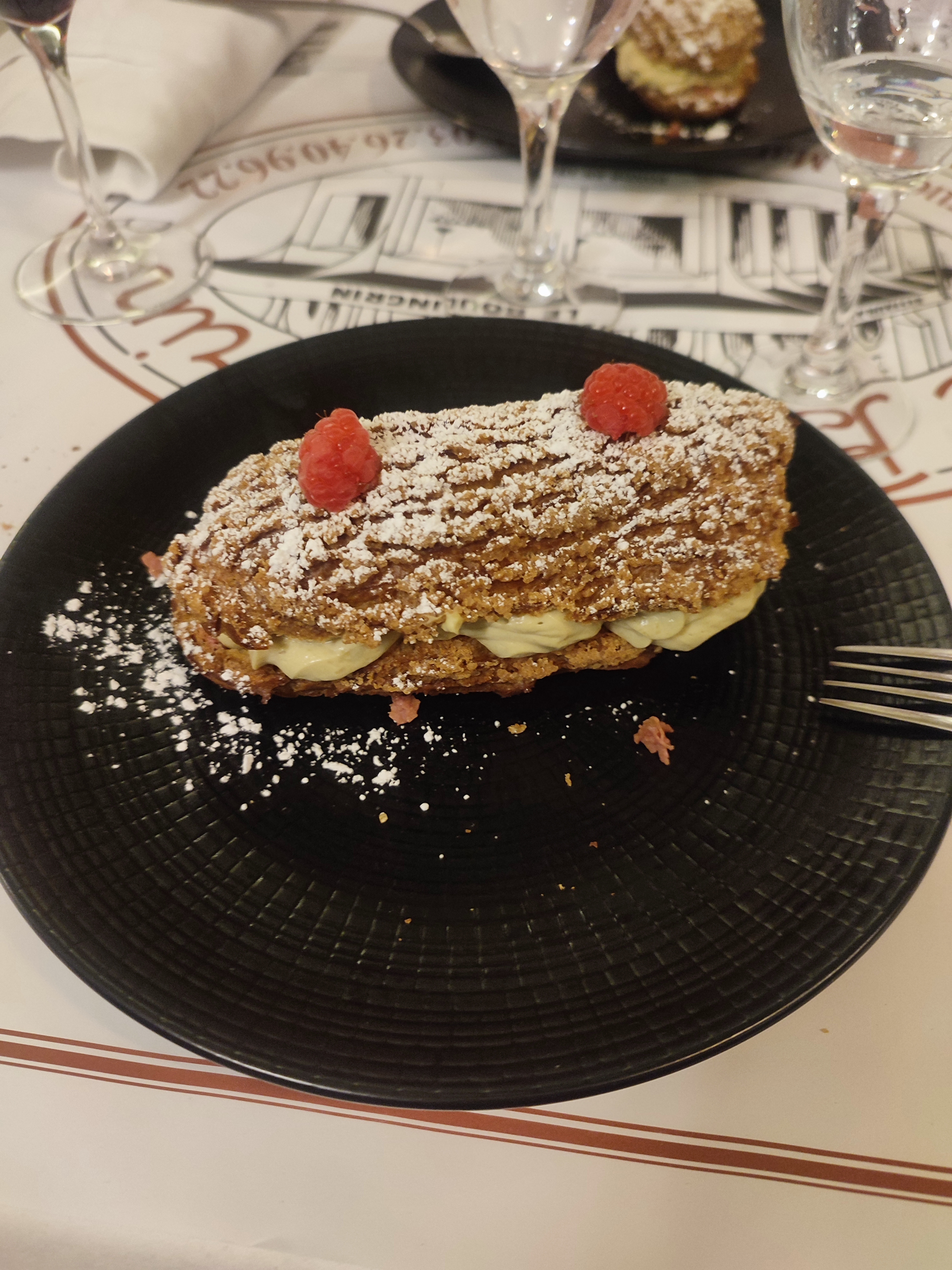 Très bon choix de restau. Entrées et plats vraiment goûtu. Serveur très efficace et sympathique (sûrement le maître d’hôtel). Seul bémol le paris Brest dont la creme n’a aucun goût … vraiment prenez un autre dessert.