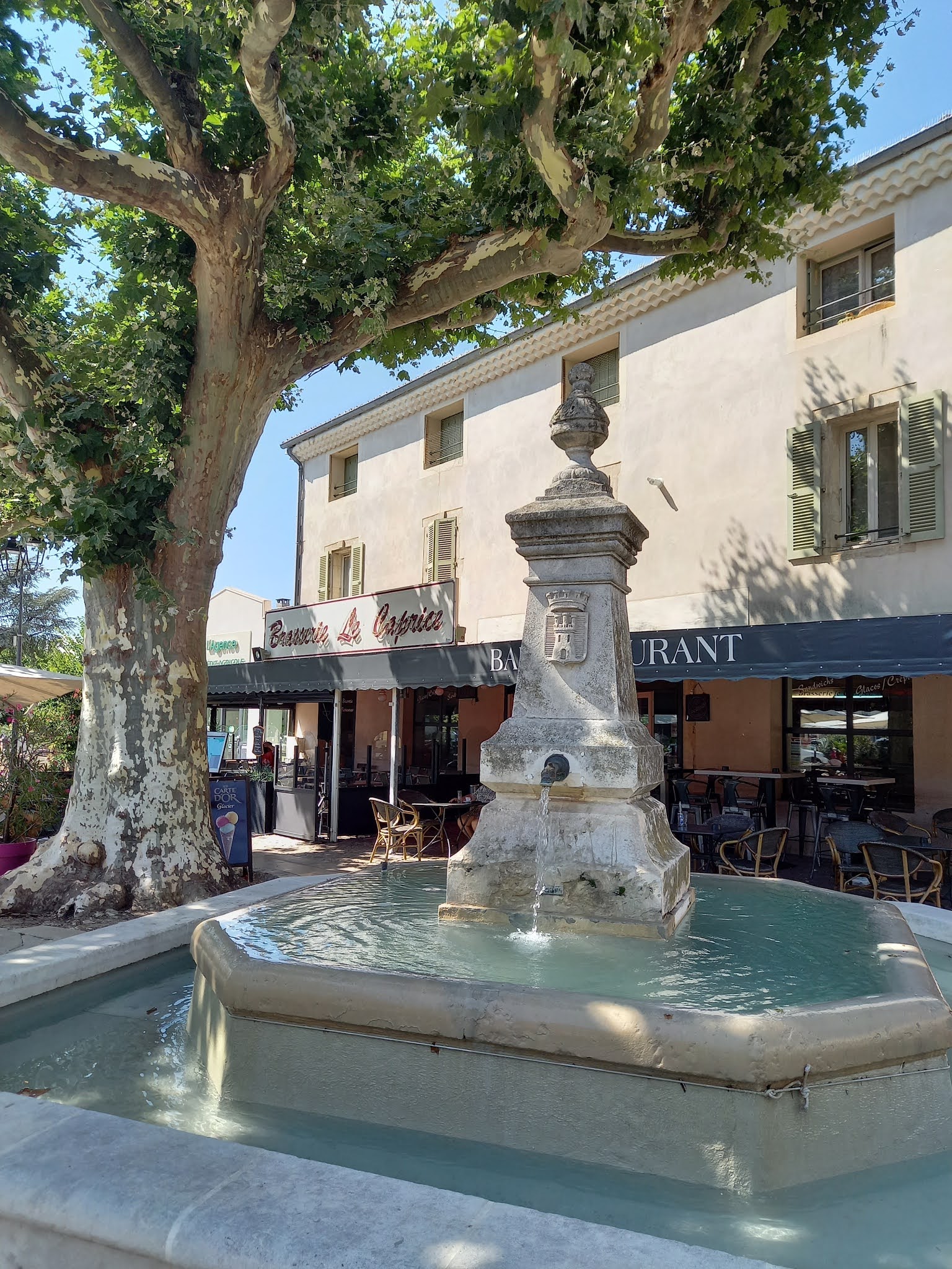 Pour la terrasse orientée au sud avec un bel olivier, une fontaine et l'horloge emblématique de la place.... Prendre un petit café là est un vrai plaisir !