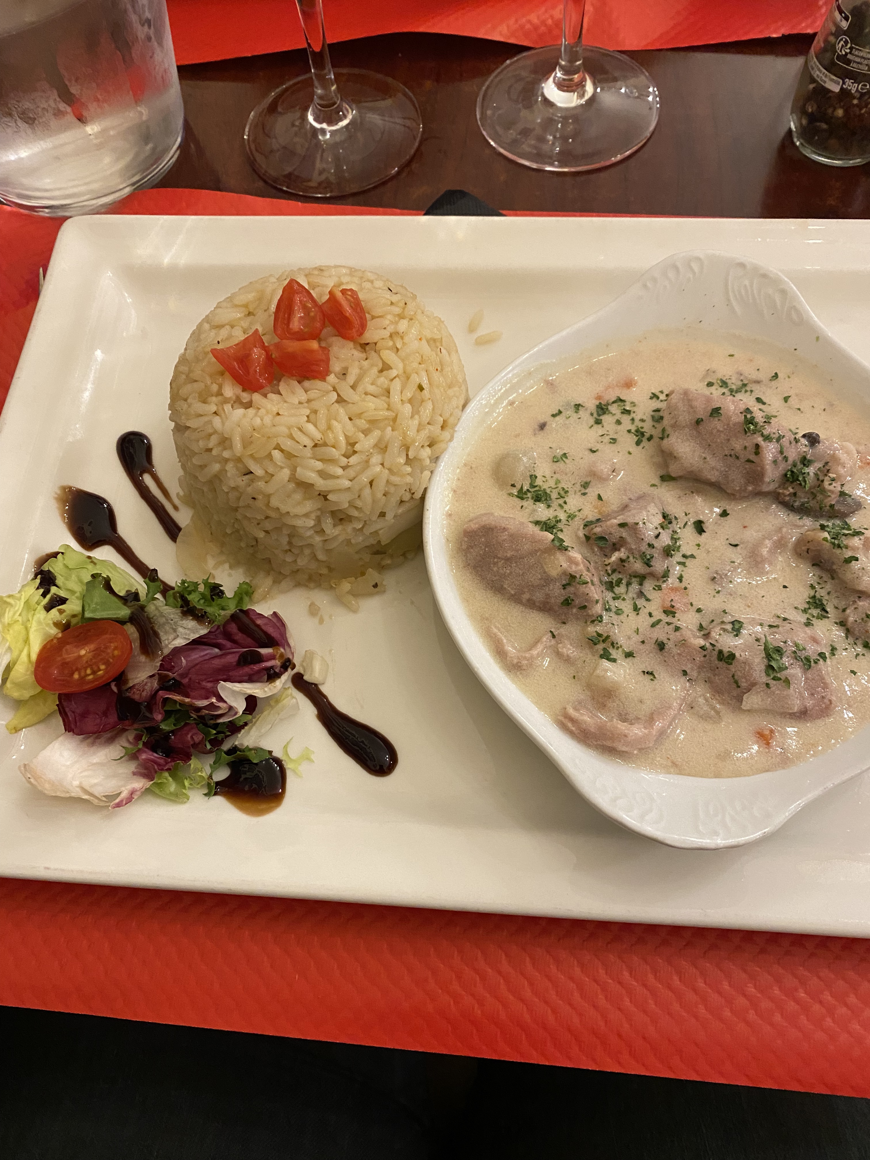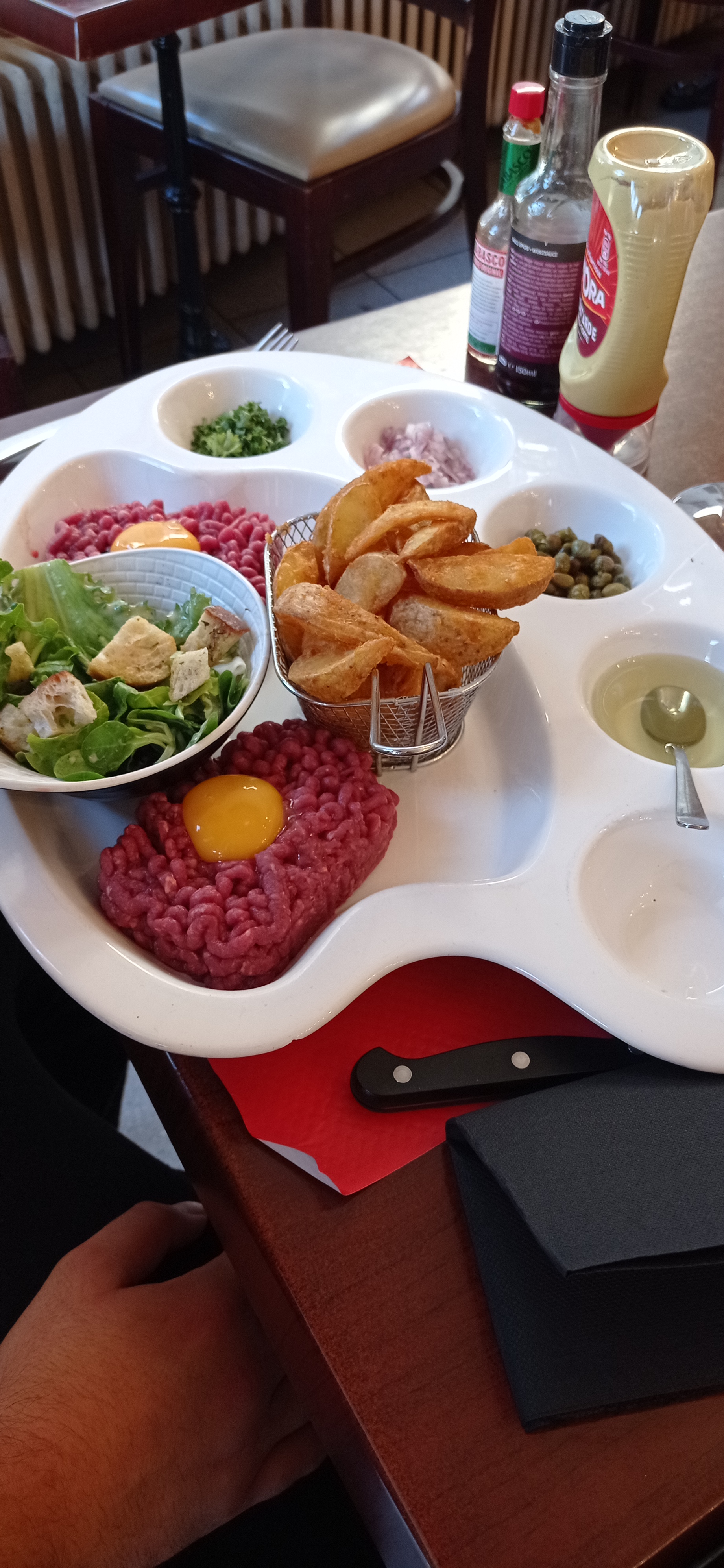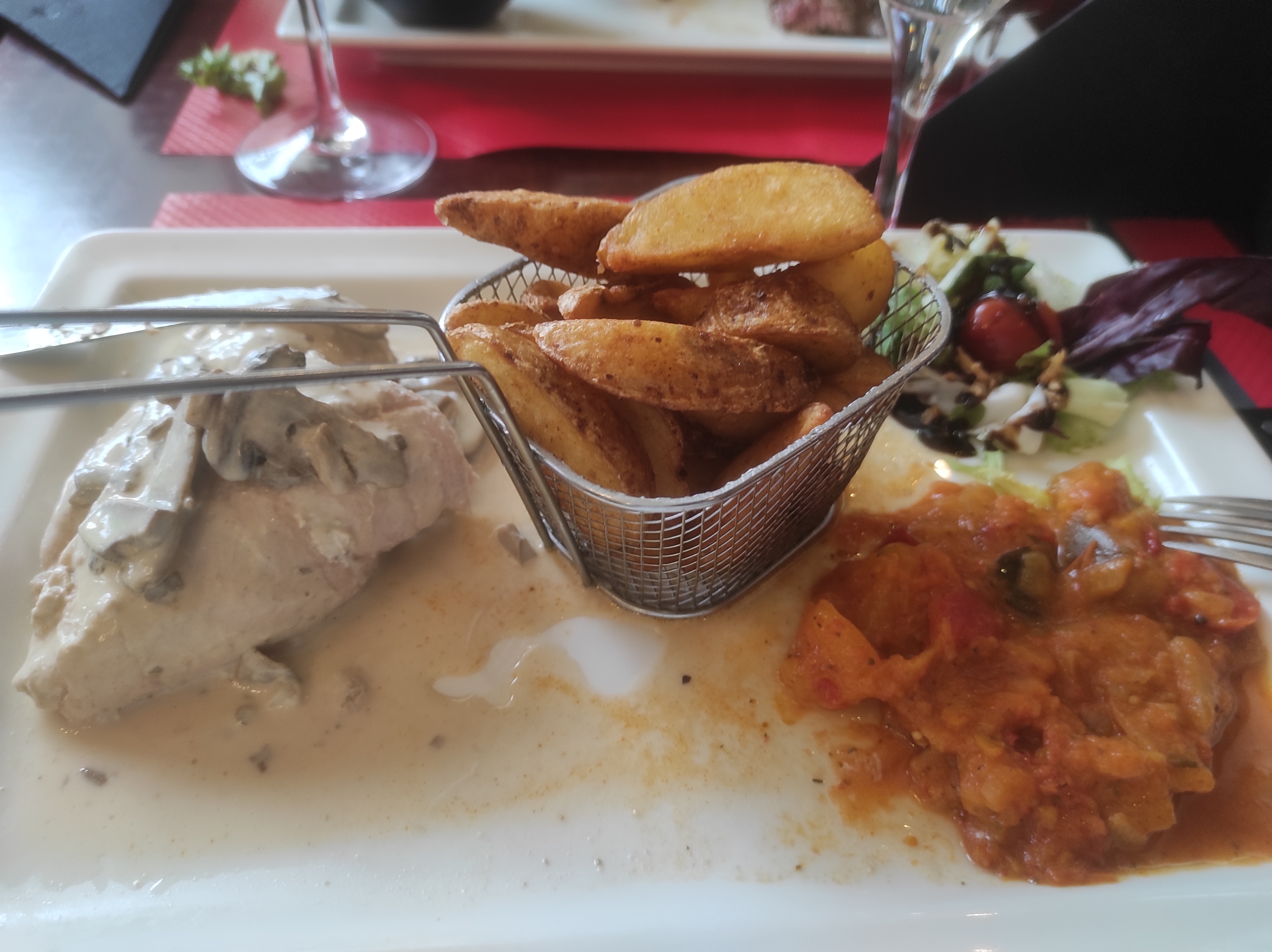 Repas en amoureux, pommes de terre surgelées mal cuites, il faut chercher le fromage.... Je ne recommande pas du tout. Sauf si le chef à changer