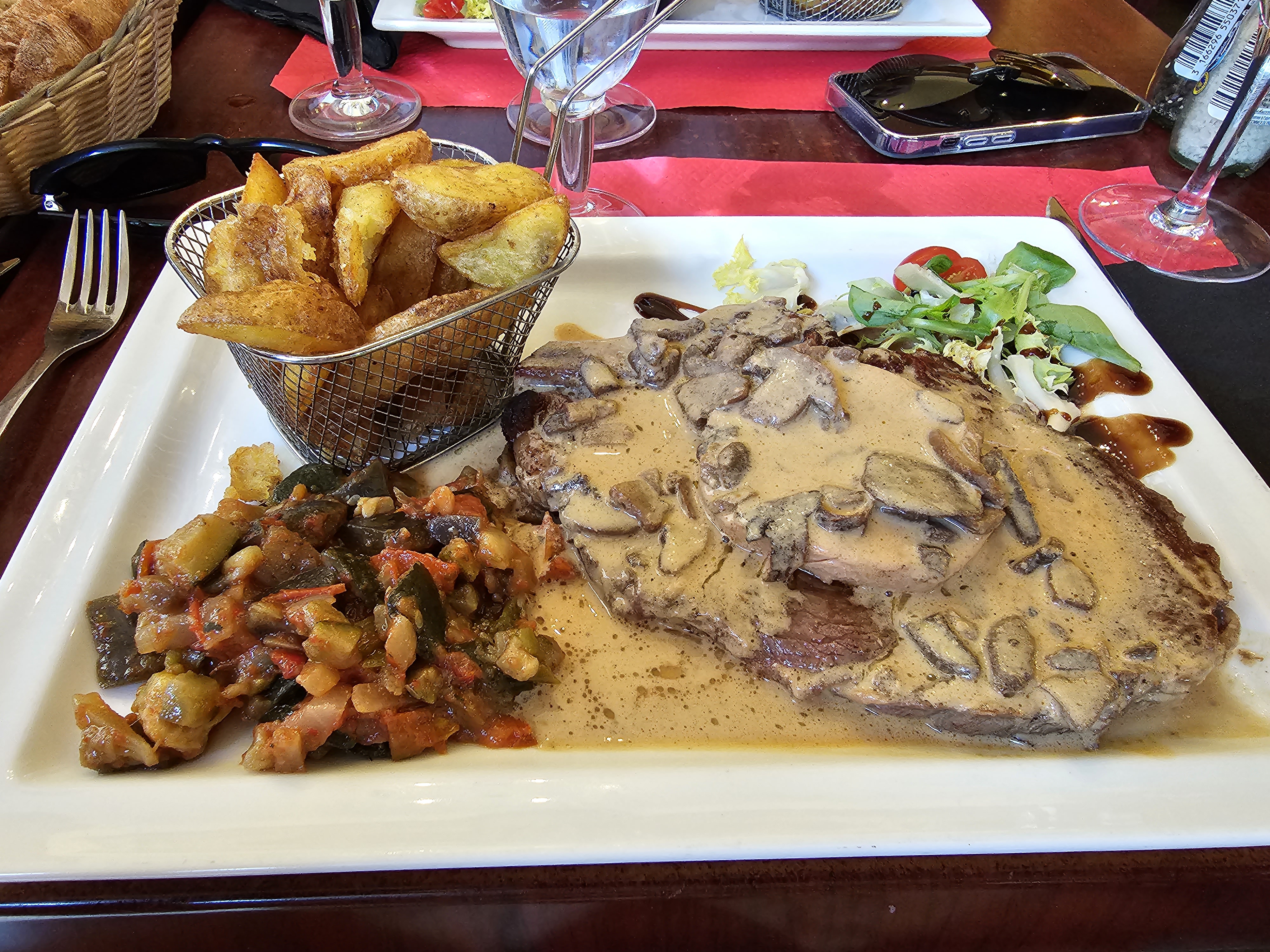 super bon côte de boeuf p.de t., pain perdu très serviable, compétant et très aimable. A revenir lors de nos passages pour l'auvergne.