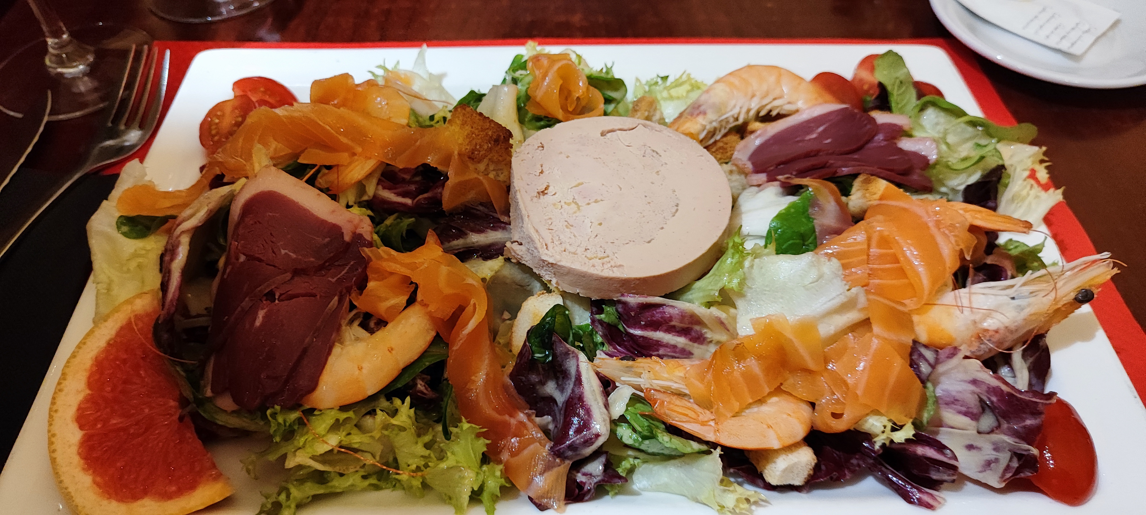 Accueil nul.. pas de menu? Prix+++ Plats chers et en petite quantité (andouillette de 10cm!!!! et servie froide...) Assiette composée foie gras et saumon fumé sans accompagnement ... 50 m plus loin , il y a de la concurrence. .
