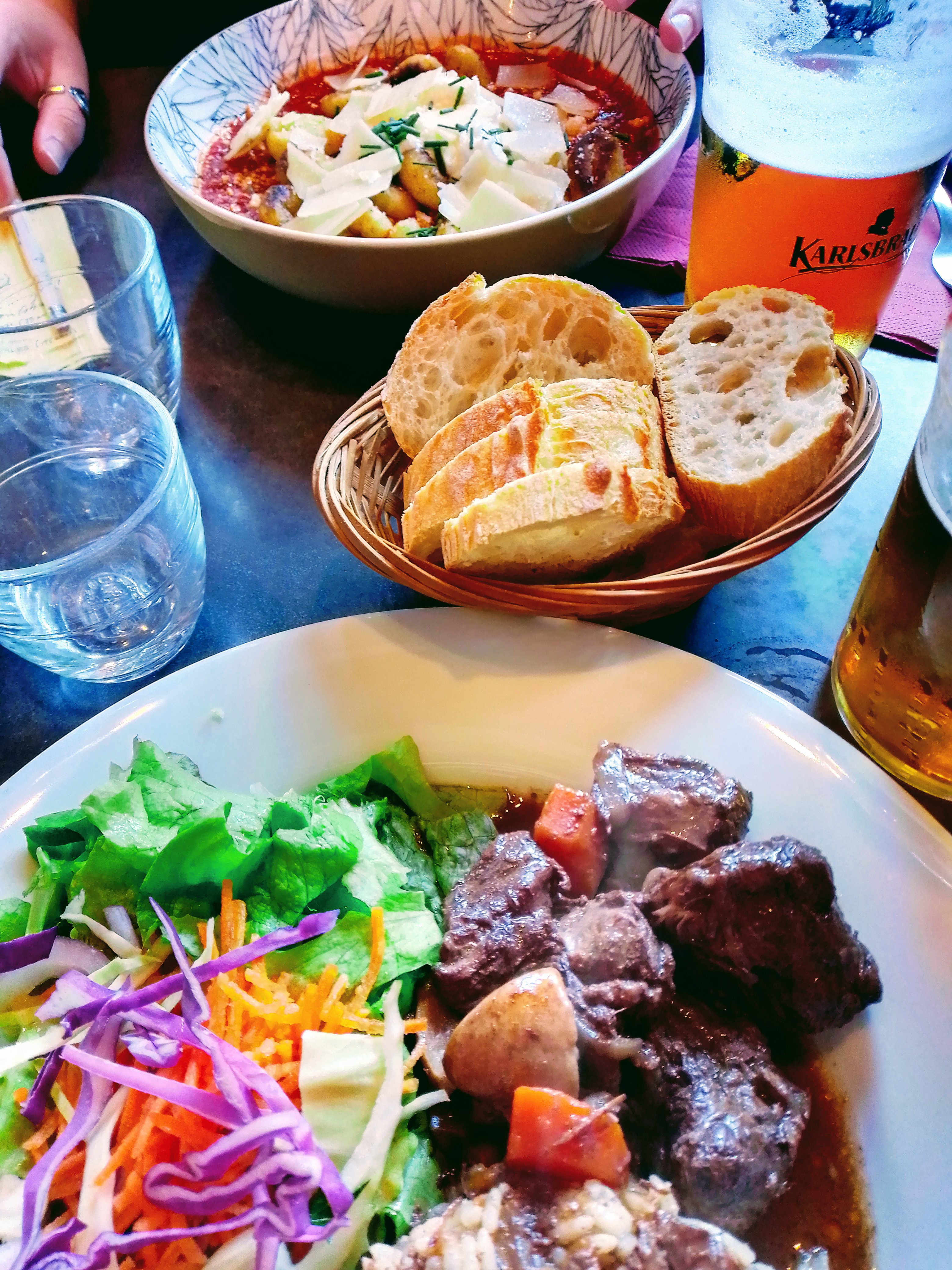 Excellent filet mignon avec écrasé de pommes de terre legerement grillé. 8.90 €. Café goumant bien servi et bon 5,50€. Attention a la chaleur des plats. Ambiance sympa. On se sent bien dans ce petit resto.