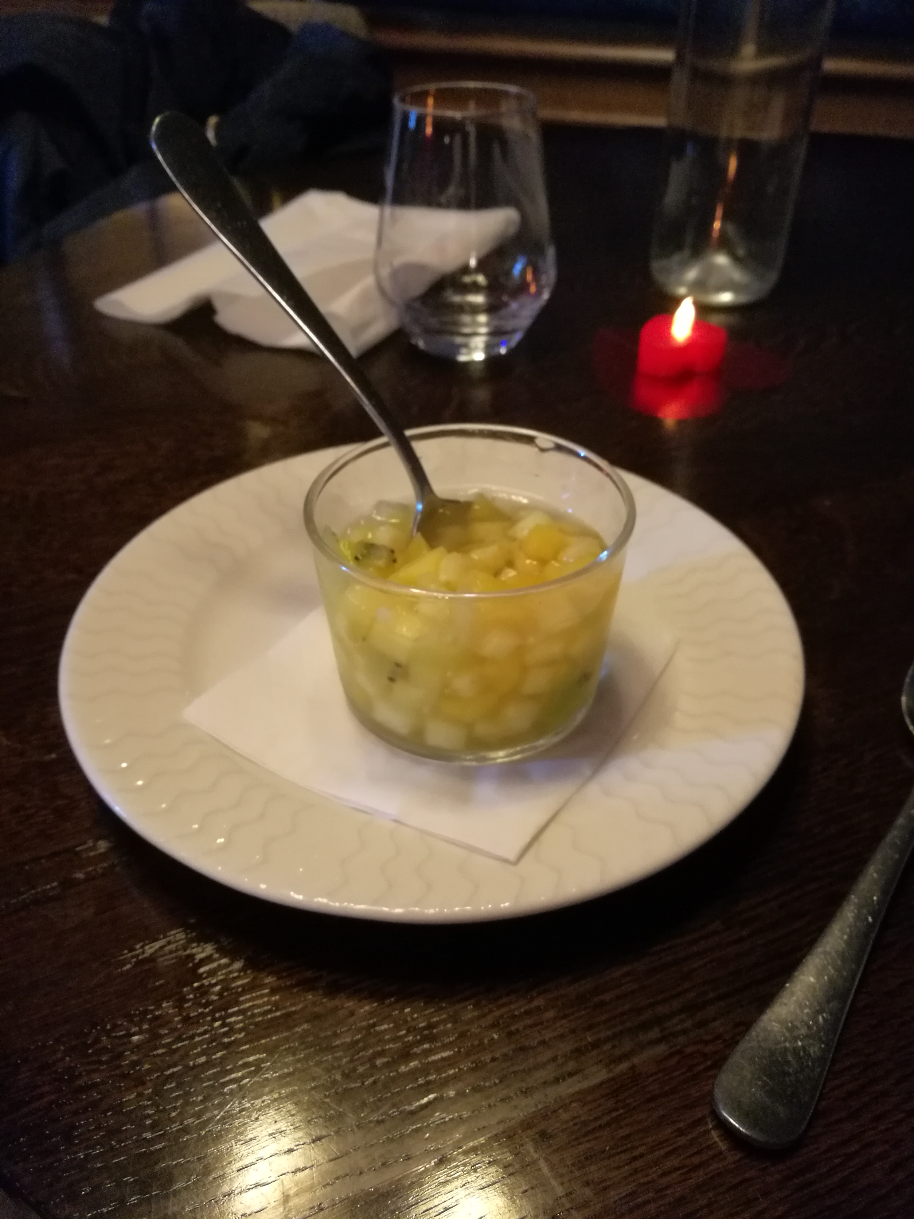 J ai passé une formidable soirée entre amis .Nous étions 4.Nous avons ete reçu par une petite brune au sourire très chaleureux débordante d’energie ,proche de ses clients qui nous a placé dans un endroit au calme .Elle nous avait conseillé le navarin d agneau en louant tous ses mérites avec ses légumes très très très frais selon elle ..Je confirmé il était admirablement bien cuisiné avec une viande très tendre.Acceuil très aimable et cadre propre.