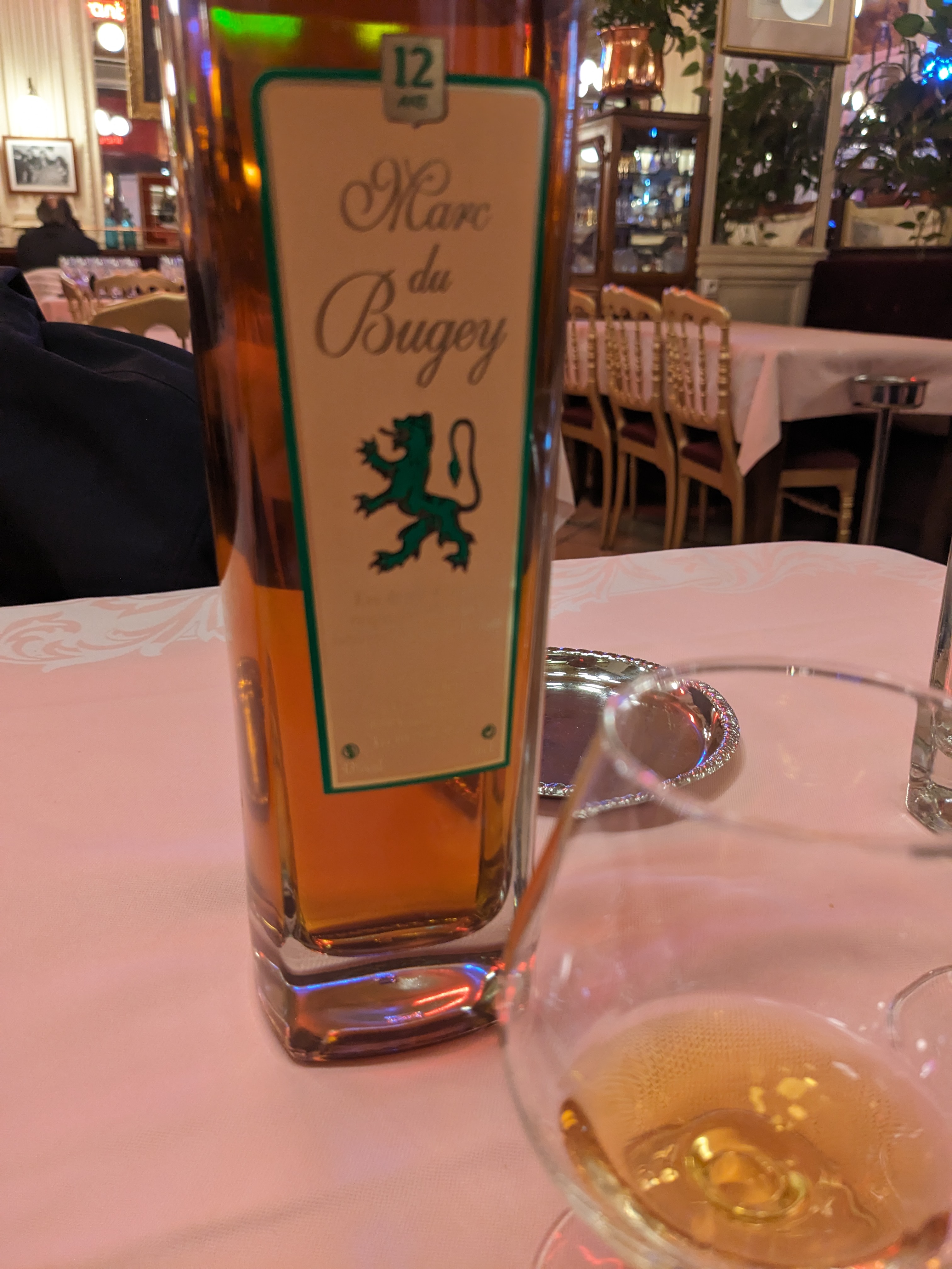 Si le cadre est chouette on ne peut pas en dire autant de la cuisine : le poulet de Bresse notamment et son accompagnement, le gratin dauphinois sont des plus fades, ce qui est tout de même un comble pour le chef-lieu du département ; on en mange de bien meilleurs dans les Dombes. Heureusement que les desserts sont là pour rehausser le niveau.. En résumé et sans snobisme aucun parce que nous venions de Lyon, c’est sans comparaison avec la qualité de la brasserie Georges et pourtant c’est plus cher.