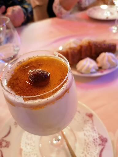 Parfait ! Très contente de cette expérience sensorielle, gustative, visuelle ! En plus ambiance pour nos anniversaires ! Quelle surprise ! Veau à la crème et trompettes délicieux ! Attention, même les gros gourmands comme nous, n'avons pas pu tout finir !!!! Entrée plat dessert super copieux ! Ça vaut le prix.
