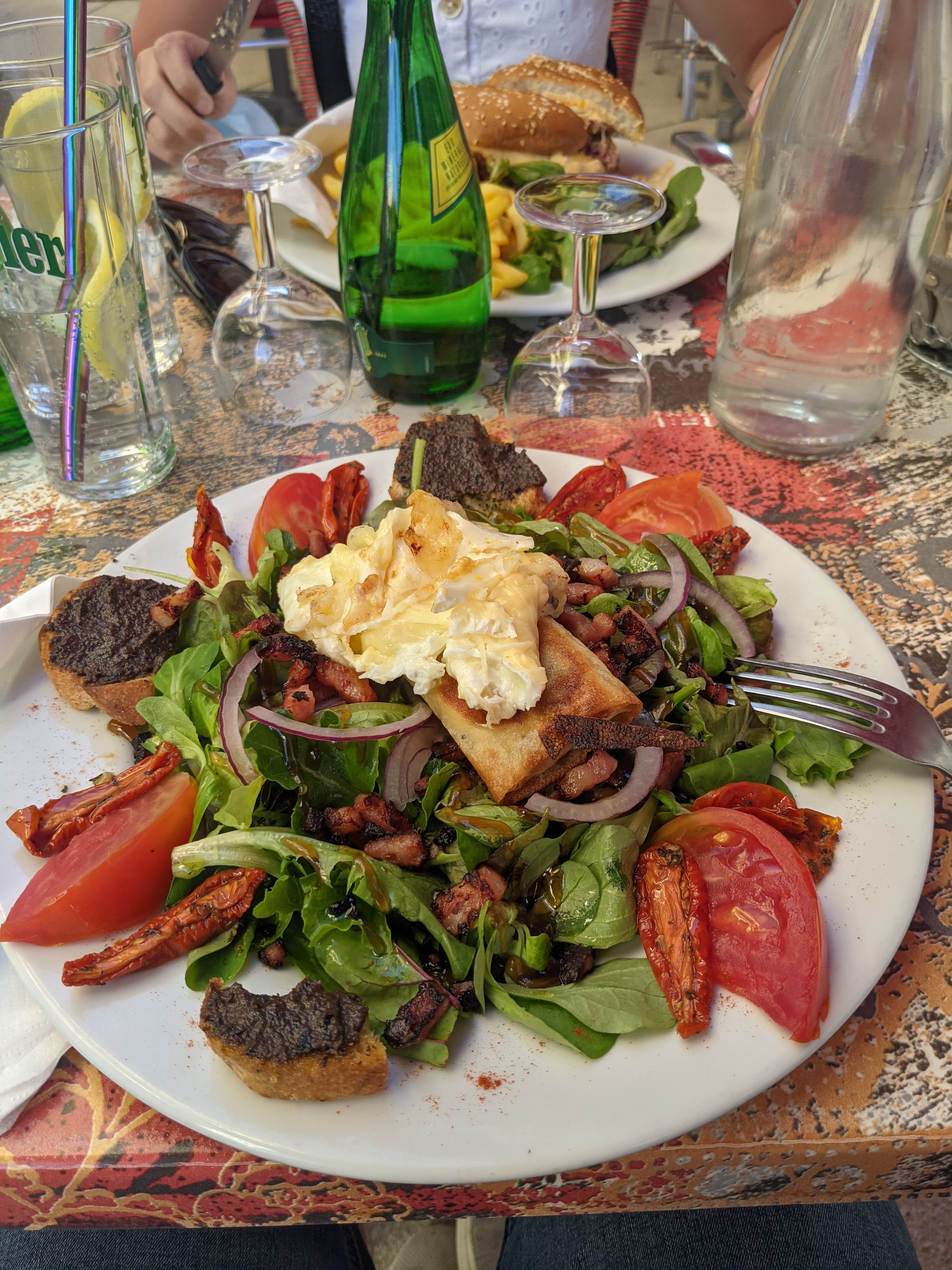 Des portions généreuses, des prix raisonnables, un bon service et il y a même un parking à proximité. C'était notre endroit par défaut pour manger pendant que nous étions dans la ville de Mane. Les places sont pour la plupart à l'extérieur, de l'autre côté de la rue par rapport au restaurant, et à côté d'un hospice, ce qui signifie que le personnel de service traverse constamment la route. J'ai mangé une salade de galette au chèvre (tenez le bacon s'il vous plaît) un jour et un burger végétarien un autre jour. Les deux étaient délicieux !