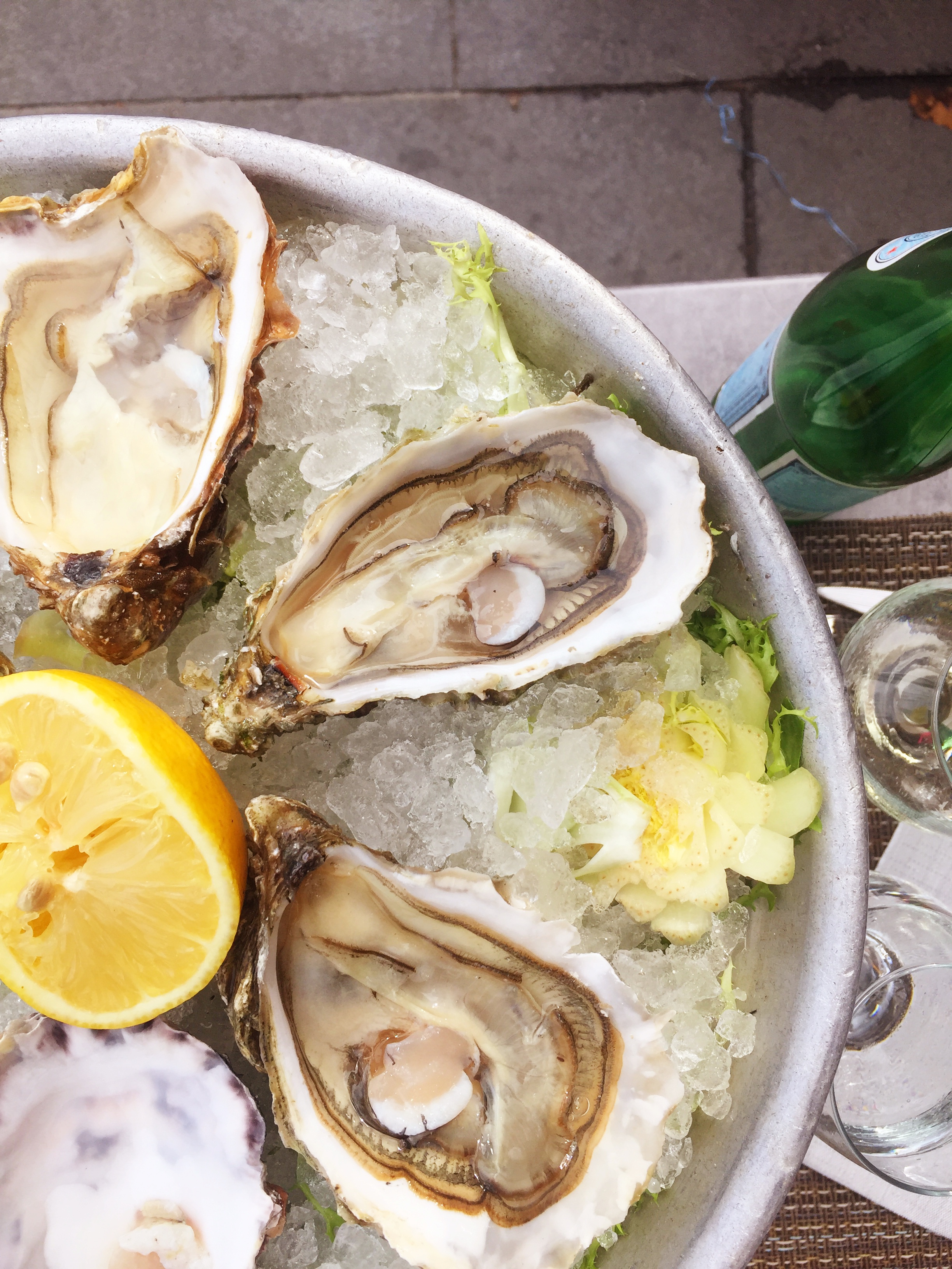 Fresh! Fresh! Oisters from Île d'Oleron - un délice ! With a Sauvignon de Touraine. The dessert, fondant au chocolat. Decadent!
