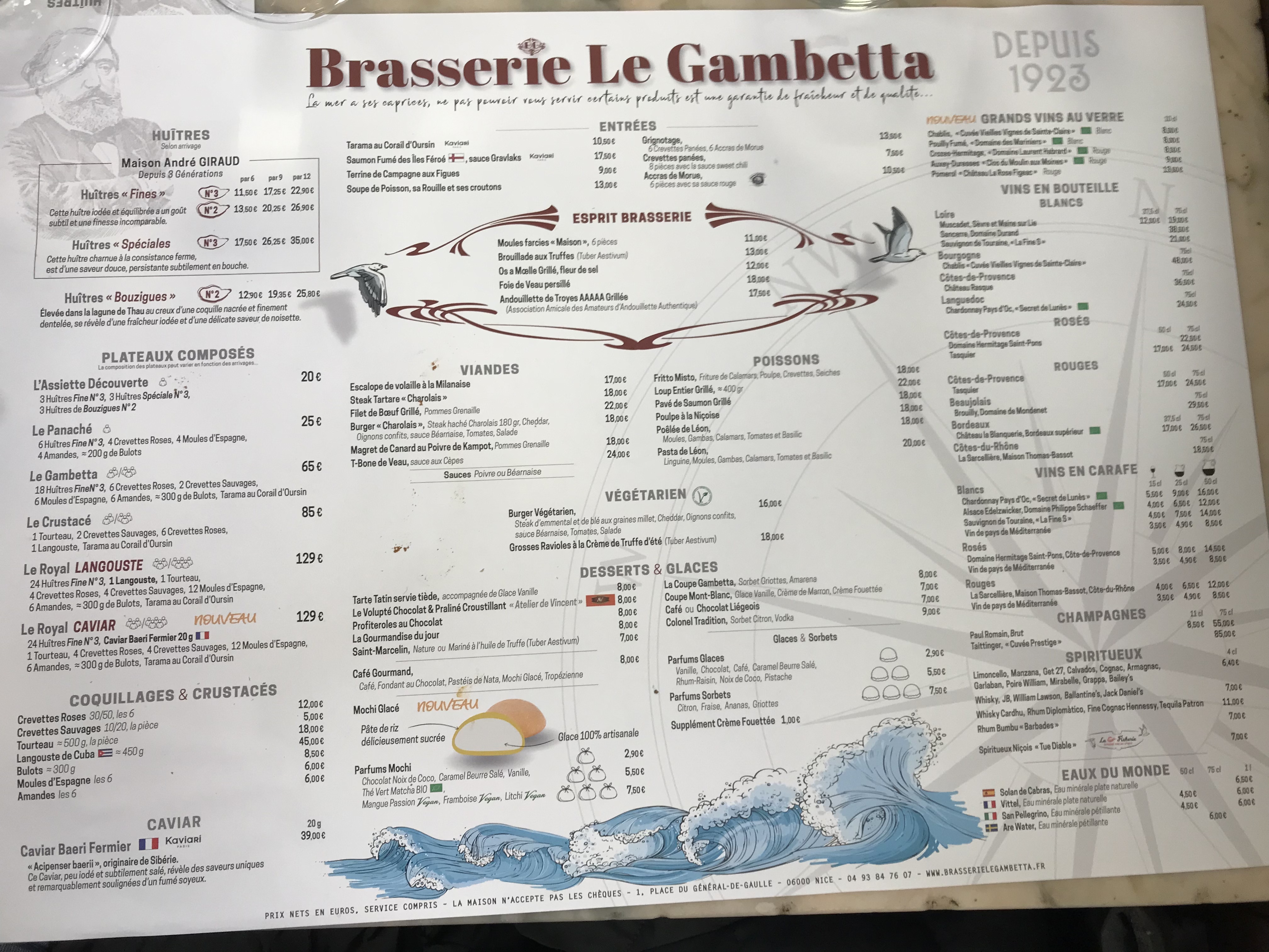 Brasserie, restau, une institution à Nice. Service, qualité des produits, cuisine, fruits de mer toujours impeccables. The Best tout simplement.