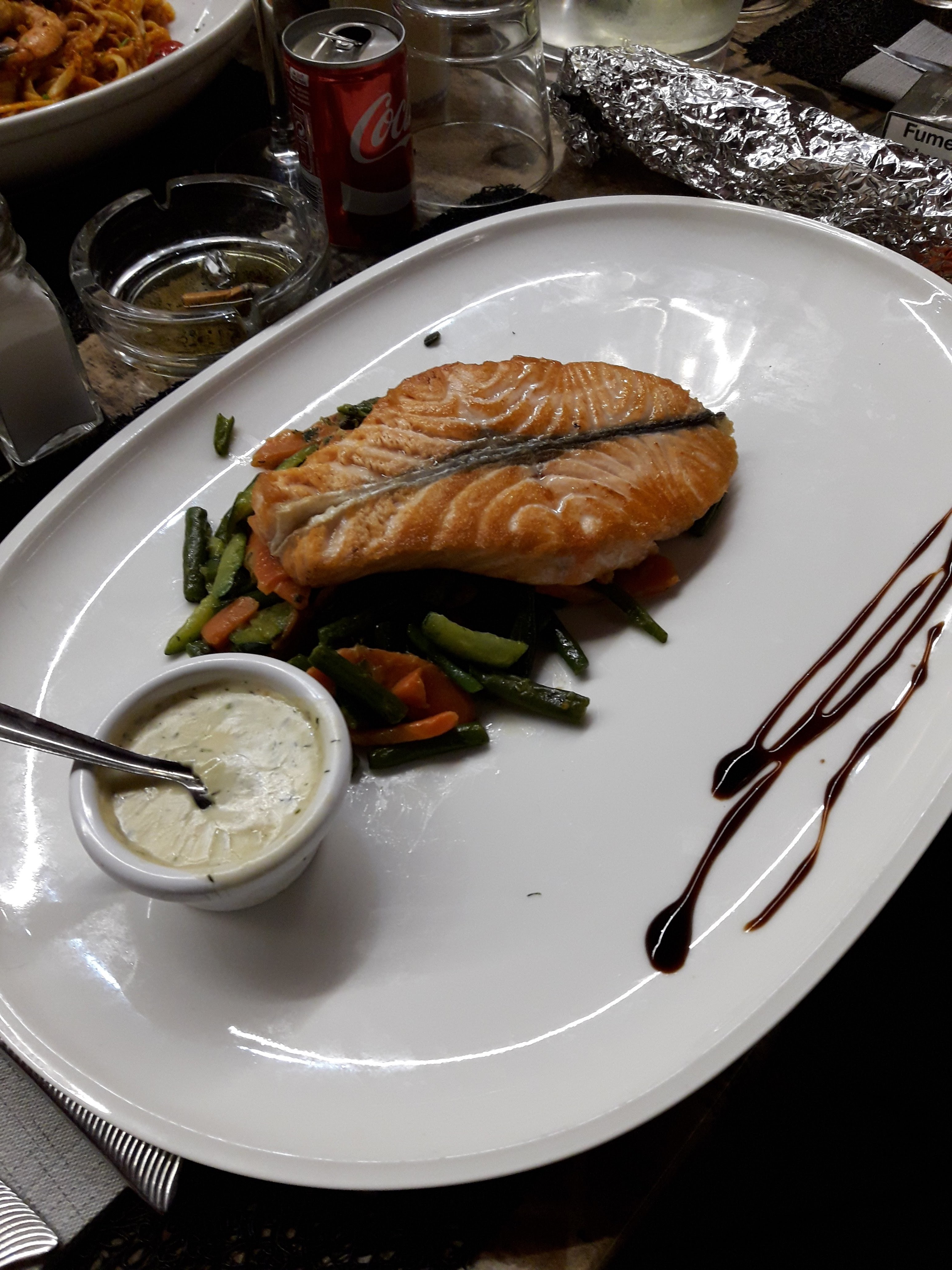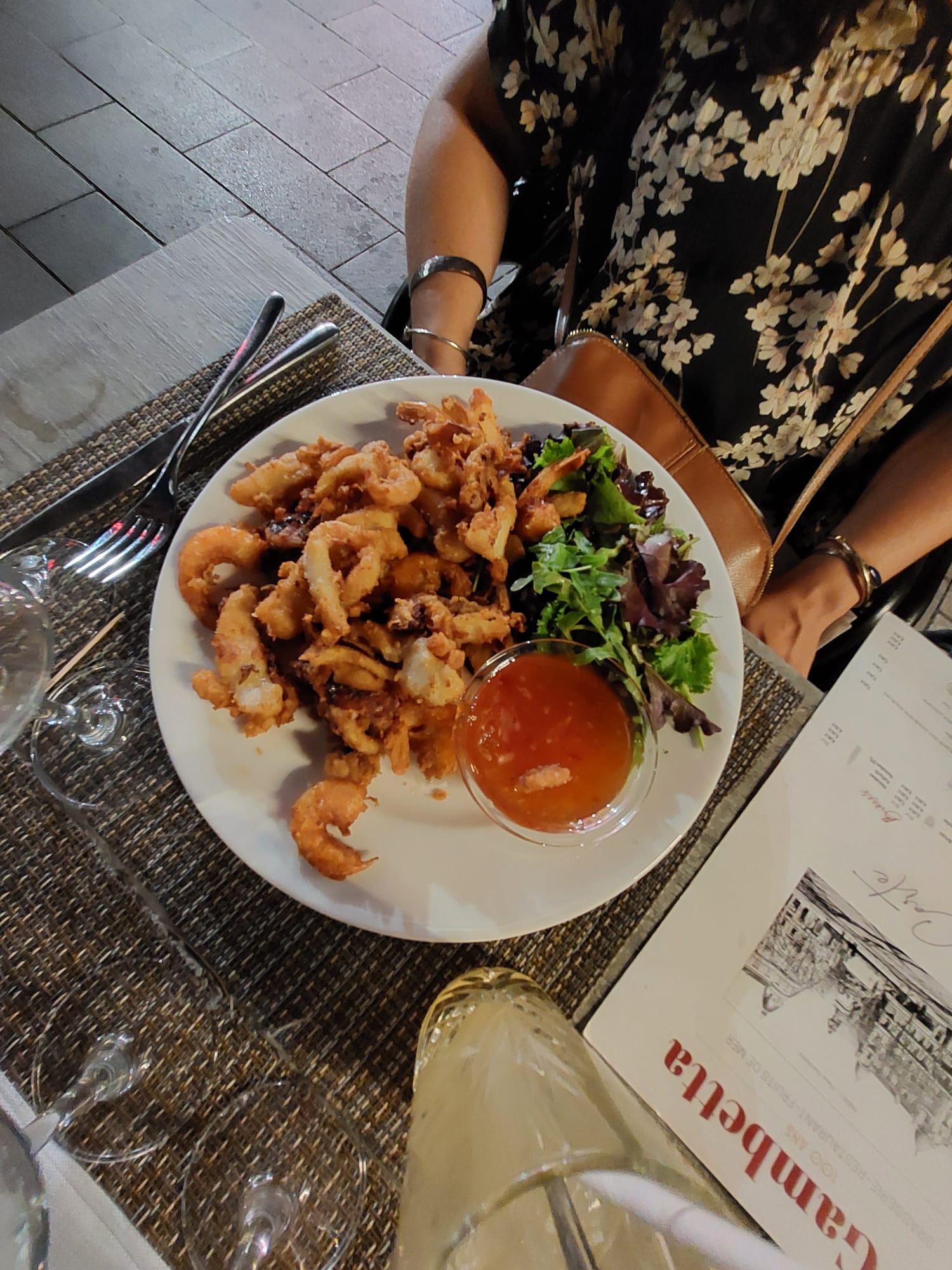 Le prix était très raisonnable par rapport à d'autres lieux touristiques comme le Café de Turin. Nous avons commandé le plateau de fruits de mer qui nous a coûté 85 euros. La nourriture était bonne. Le crabe était frais et juteux. Le service était sympathique. Nous nous sommes d'abord assis dehors, mais nous leur avons ensuite demandé de déménager à l'intérieur parce que la dame à côté de nous fumait (nous comprenons que ces tables sont ouvertes pour fumer mais nous voulions avoir un peu d'air frais). Les serveurs ont volontiers déplacé notre nourriture à l'intérieur. J'aurais aimé que la table soit plus grande car nous n'avions pas beaucoup d'espace pour la nourriture mais ce n'était qu'un petit reproche.
