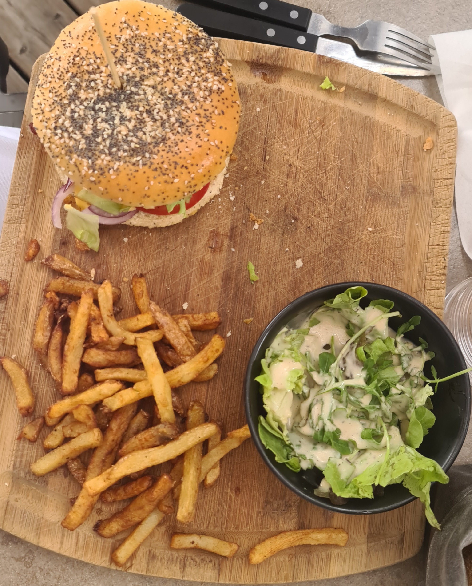La salade qui nageait est en sauce, burger fade.