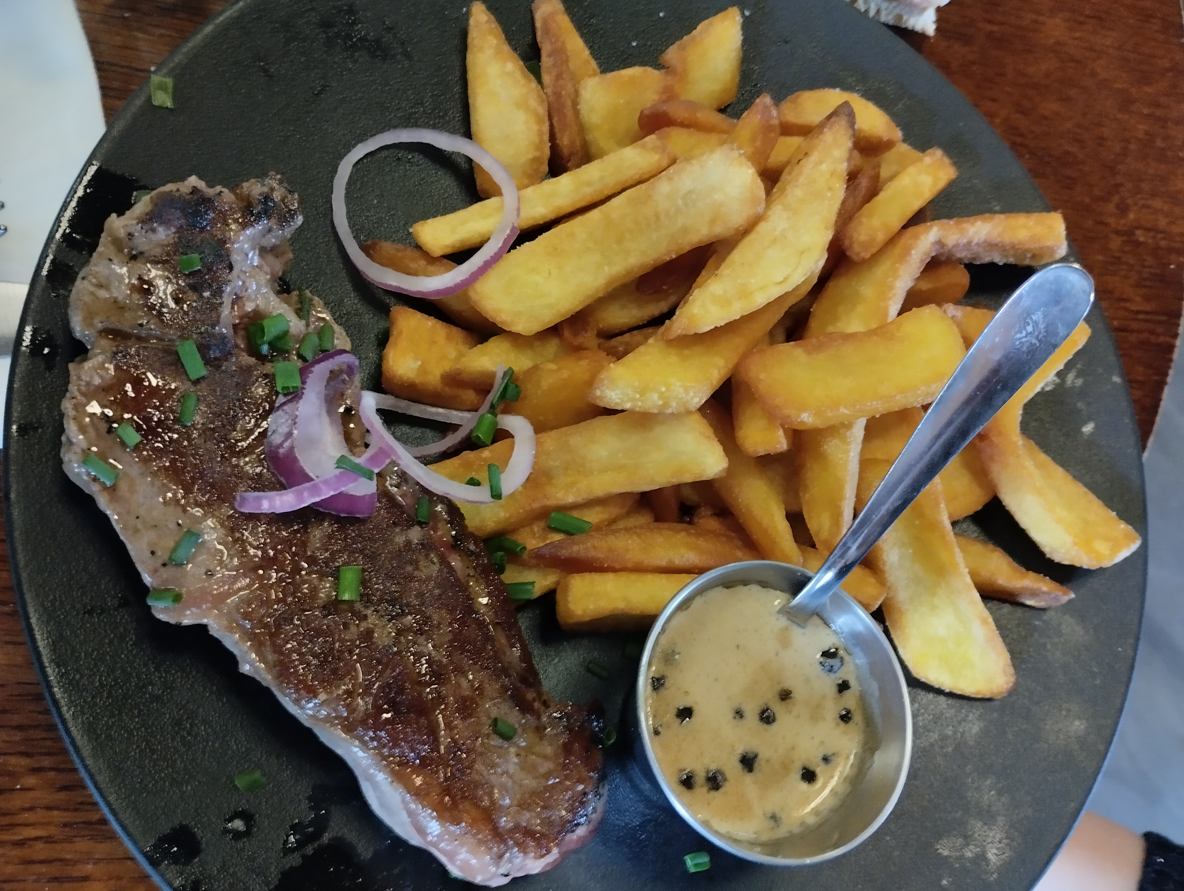 Une brasserie ouverte à cette heure tardive, ça ne court pas les rues. Et du personnel sympathique, c’est agréable. Petit bémol, avec la porte qui s’ouvre en permanence et vient nous refroidir.