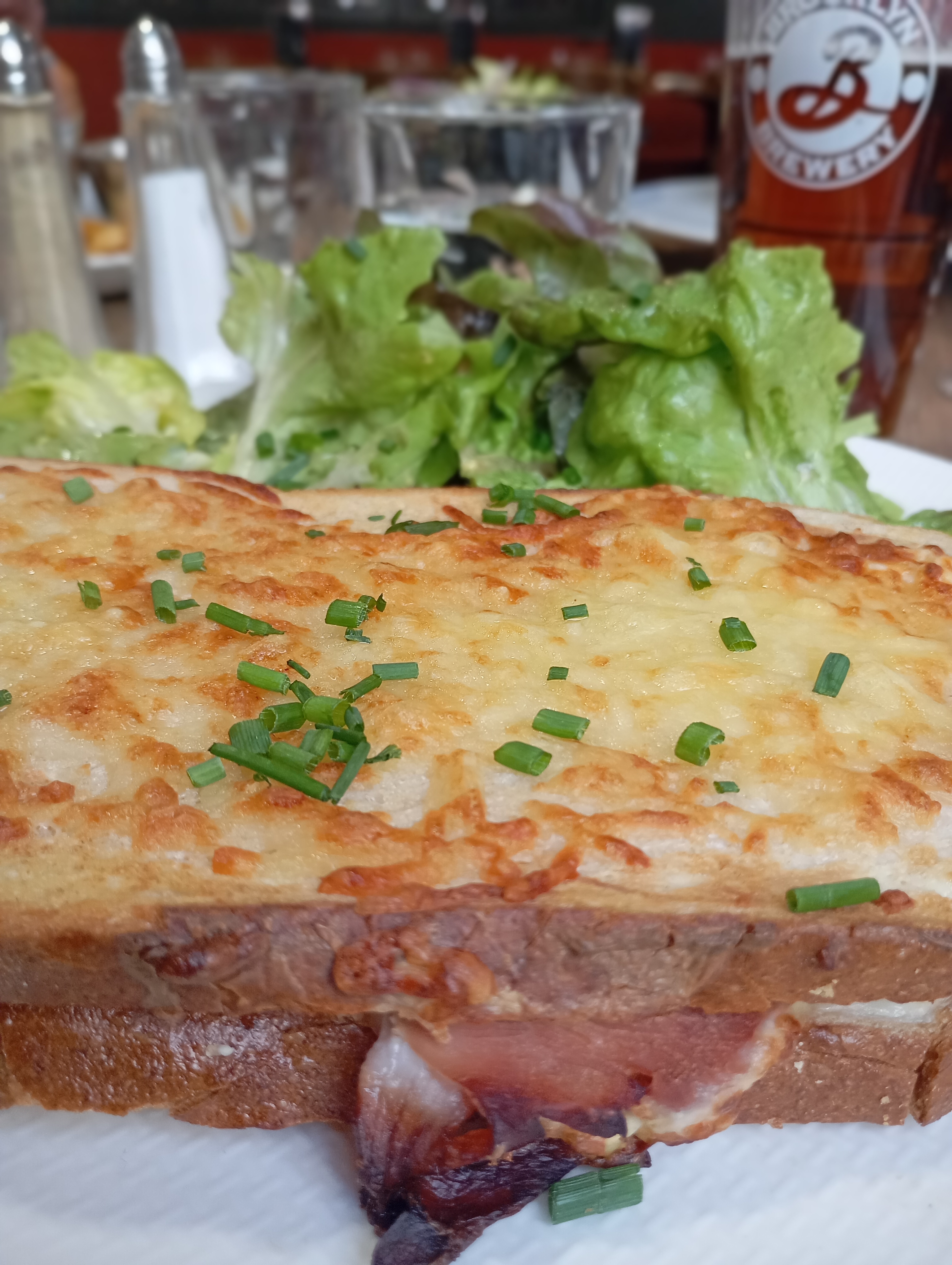 Une brasserie comme on les aime, avec des plats de brasserie (un croque monsieur pour moi), une ambiance pub britannique qui m'a plue!