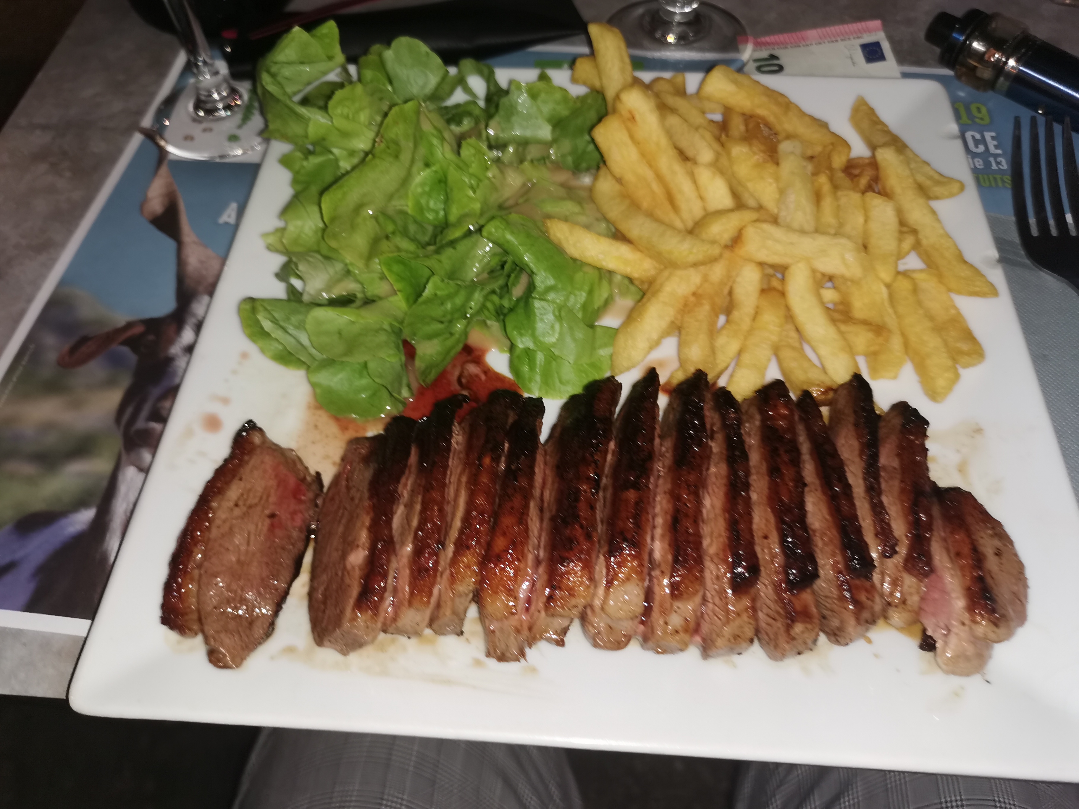 Très bon accueil, très chaleureux, je me suis laissée tenter par l’entrecôte de taureau: excellente, servie avec frites et salade !!! Je recommande vivement cet établissement ….