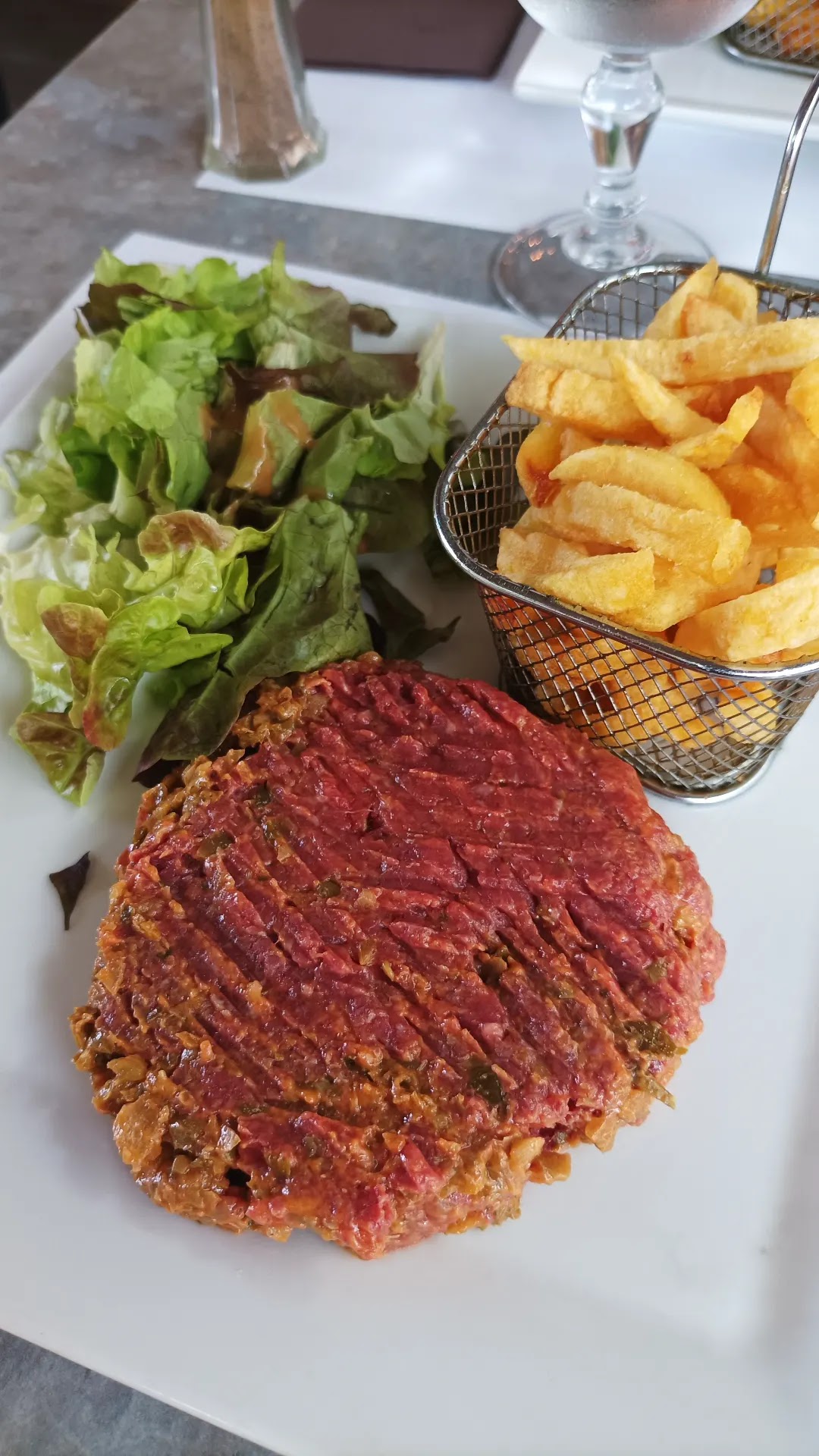 Très sympa, service impeccable, tartare très bon, dommage: un peu de bruit.