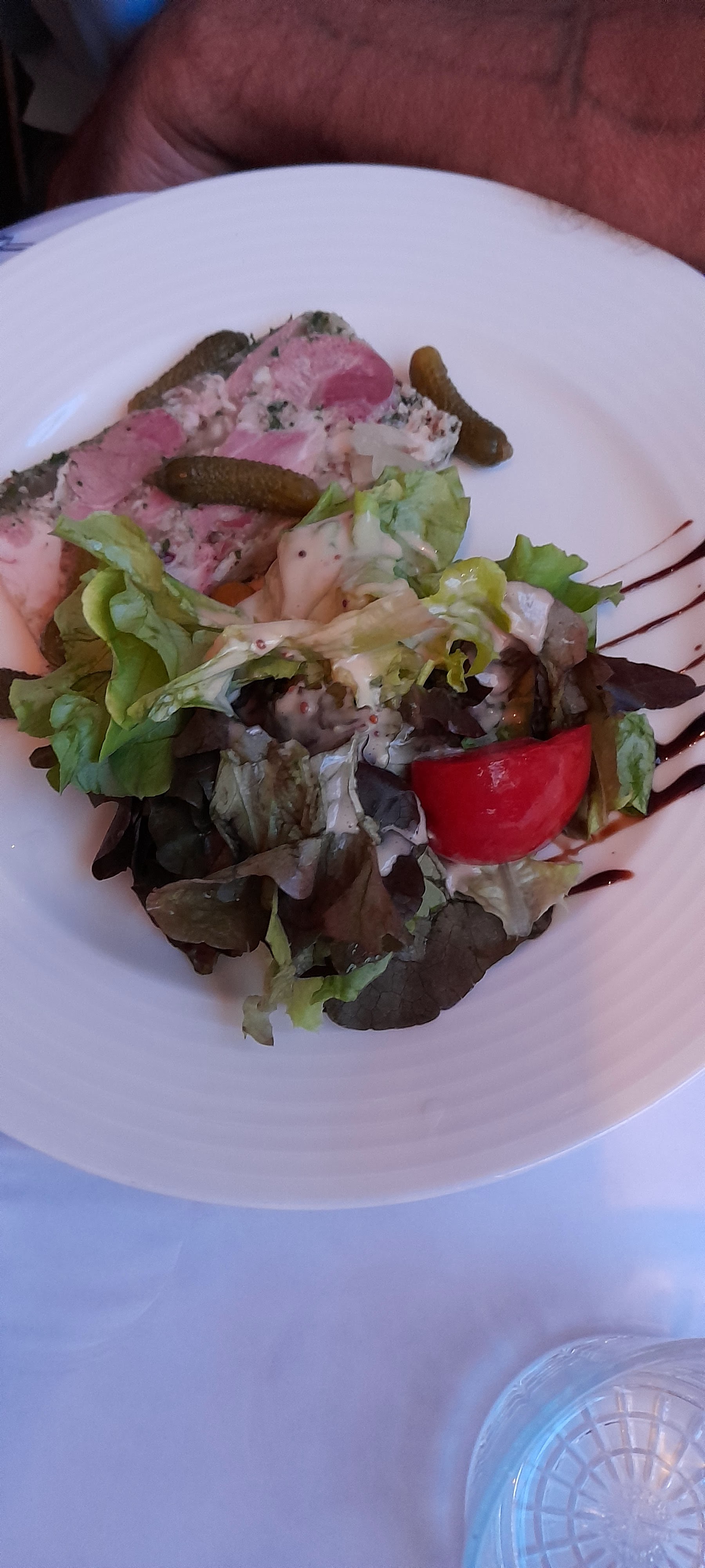 En rentrant un grand Bonjour nous accueille! c'est super! Le Jambon persillé et les suprêmes de poulet étaient excellents!! Nous y retournerons dès que possible!! Je tiens à remercier l'équipe en cuisine et l'équipe en salle, vous avez contribué à un bon souvenir de Beaune! Merci à vous et Bravo! ps: l'Andouillette et la souris d'Agneau faisaient très envie