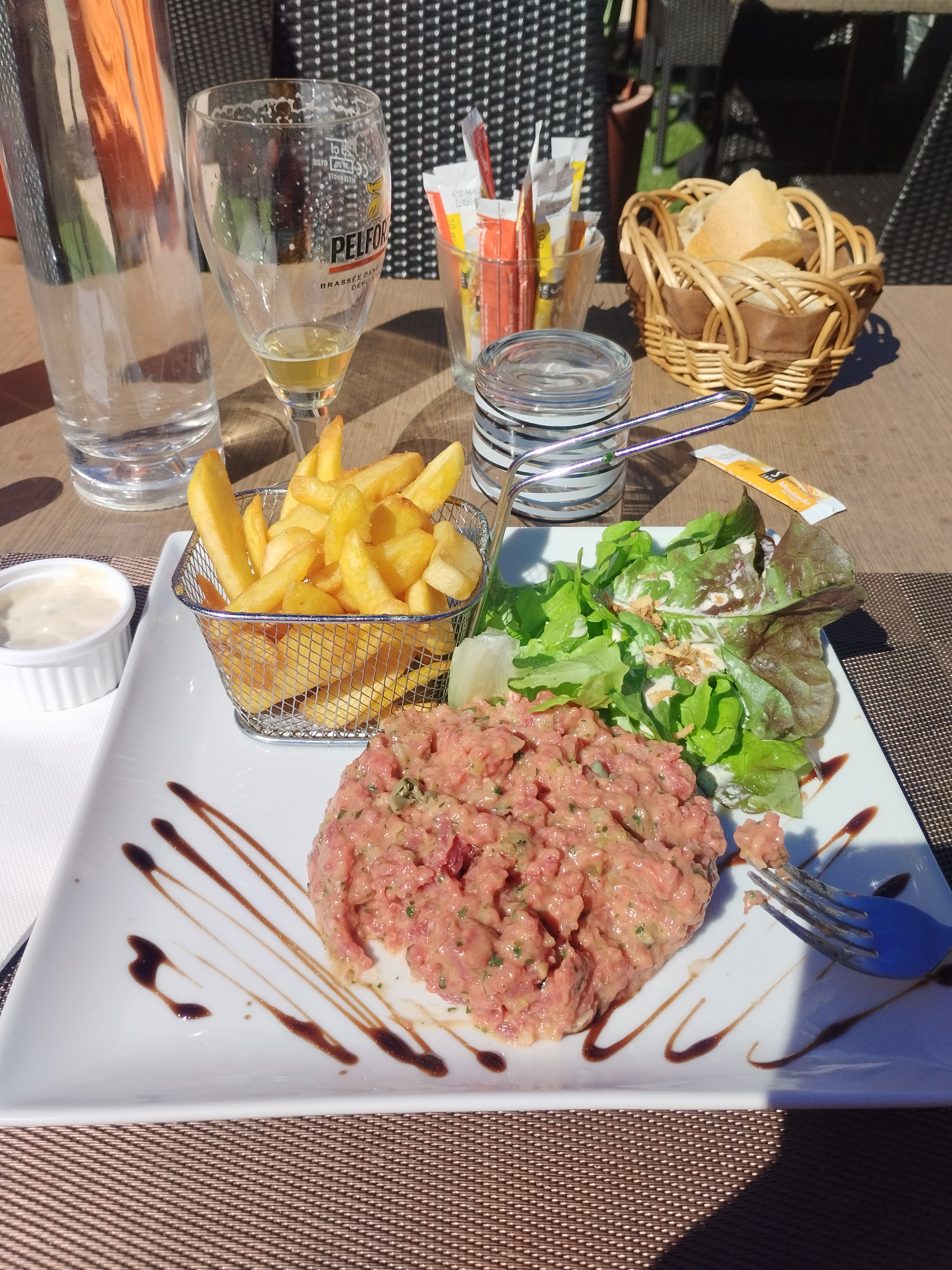 Resto à faire tartare exceptionnel frite super moi qui suis pas fou des frites si vous passez à Fréjus passez au palais restitue à côté de l office de tourisme