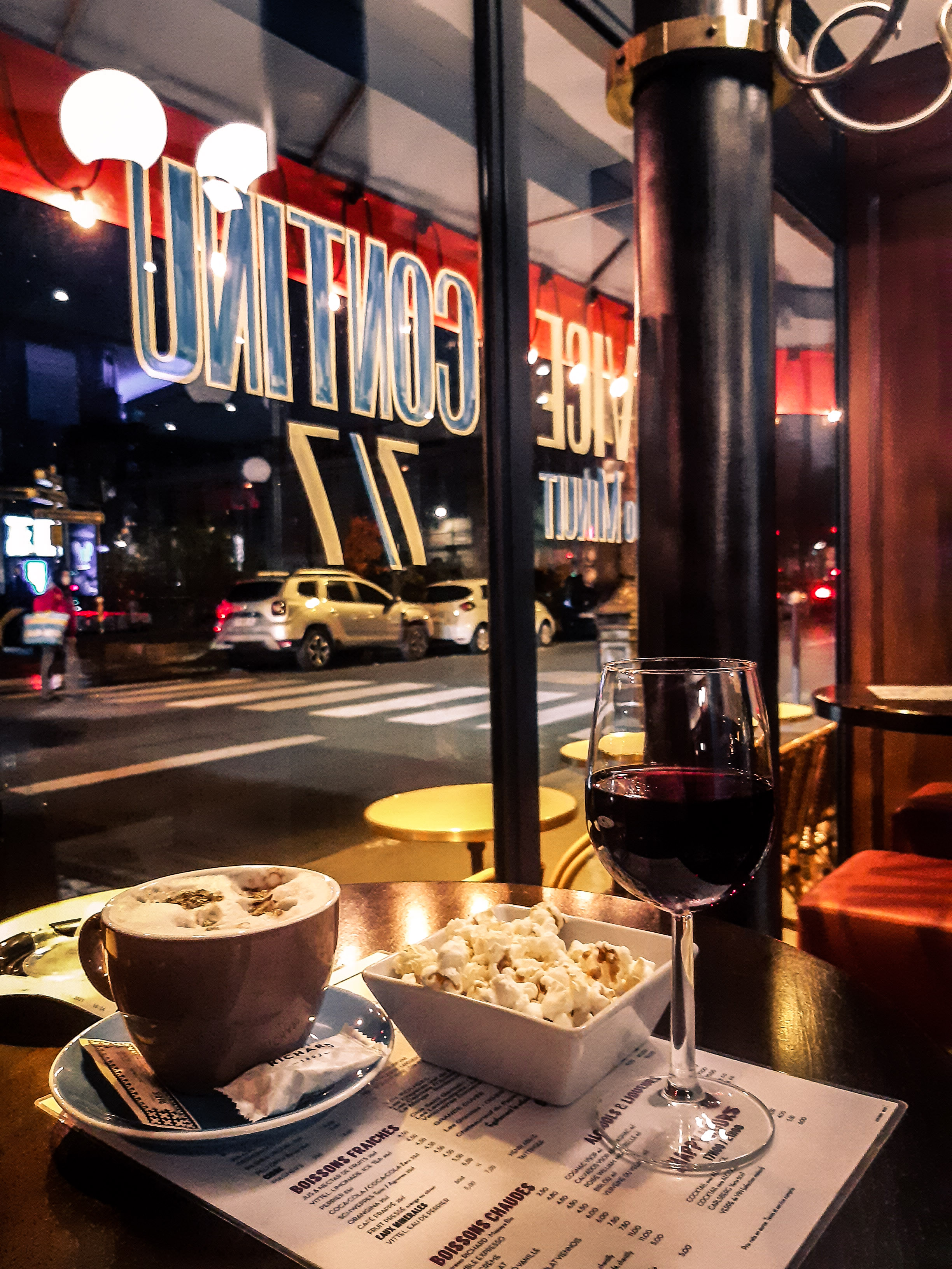 Bar découvert lors d'un apéro. Équipe très accueillante. Serveuse très sympathique, de très bons conseils pour le choix du vin, et toujours avec le sourire! Pop corn offerts avec le verre de vin. Ambiance chaleureuse. Je n'ai pas eu l'occasion de les goûter, mais leurs desserts maisons sont très appétissants ! Je recommande!